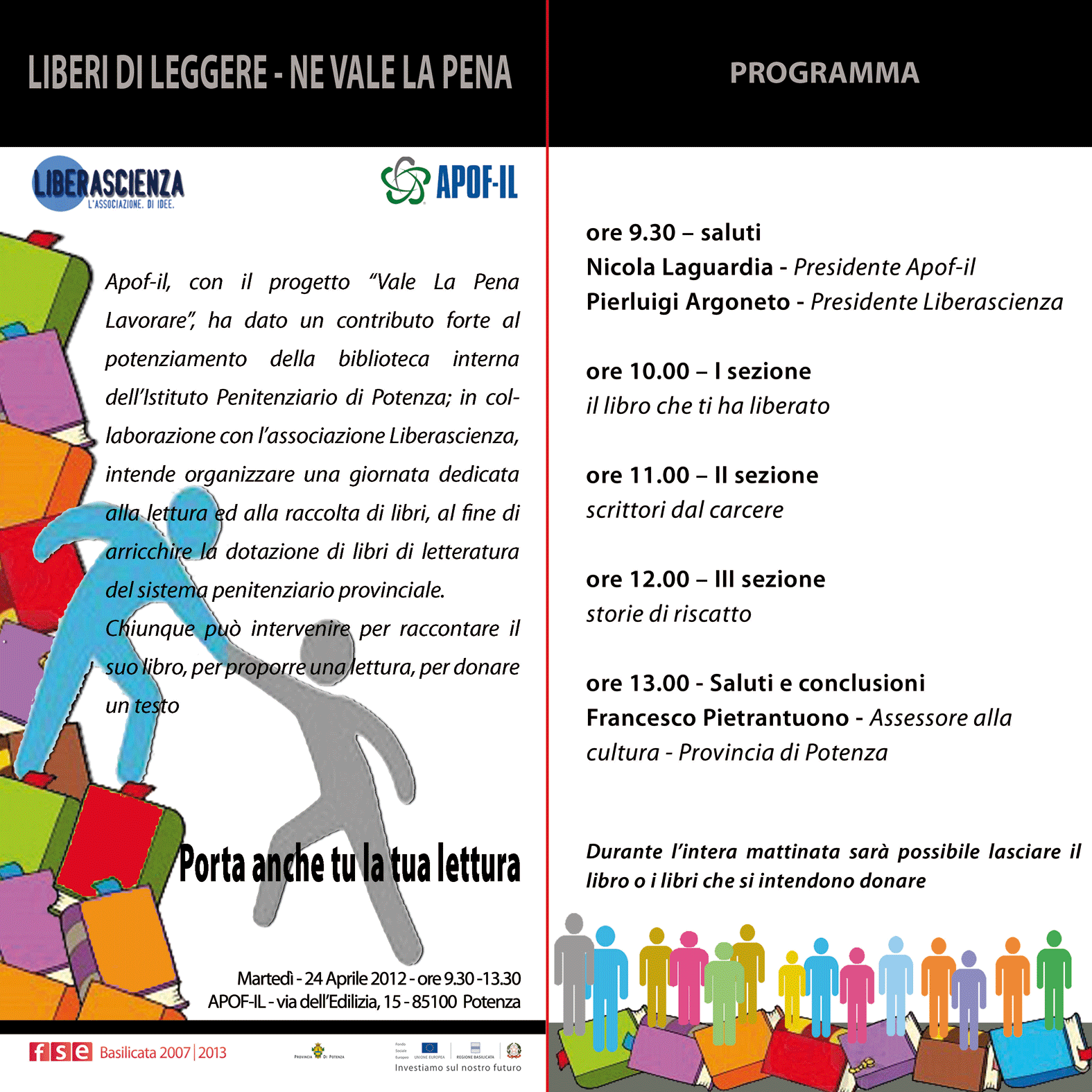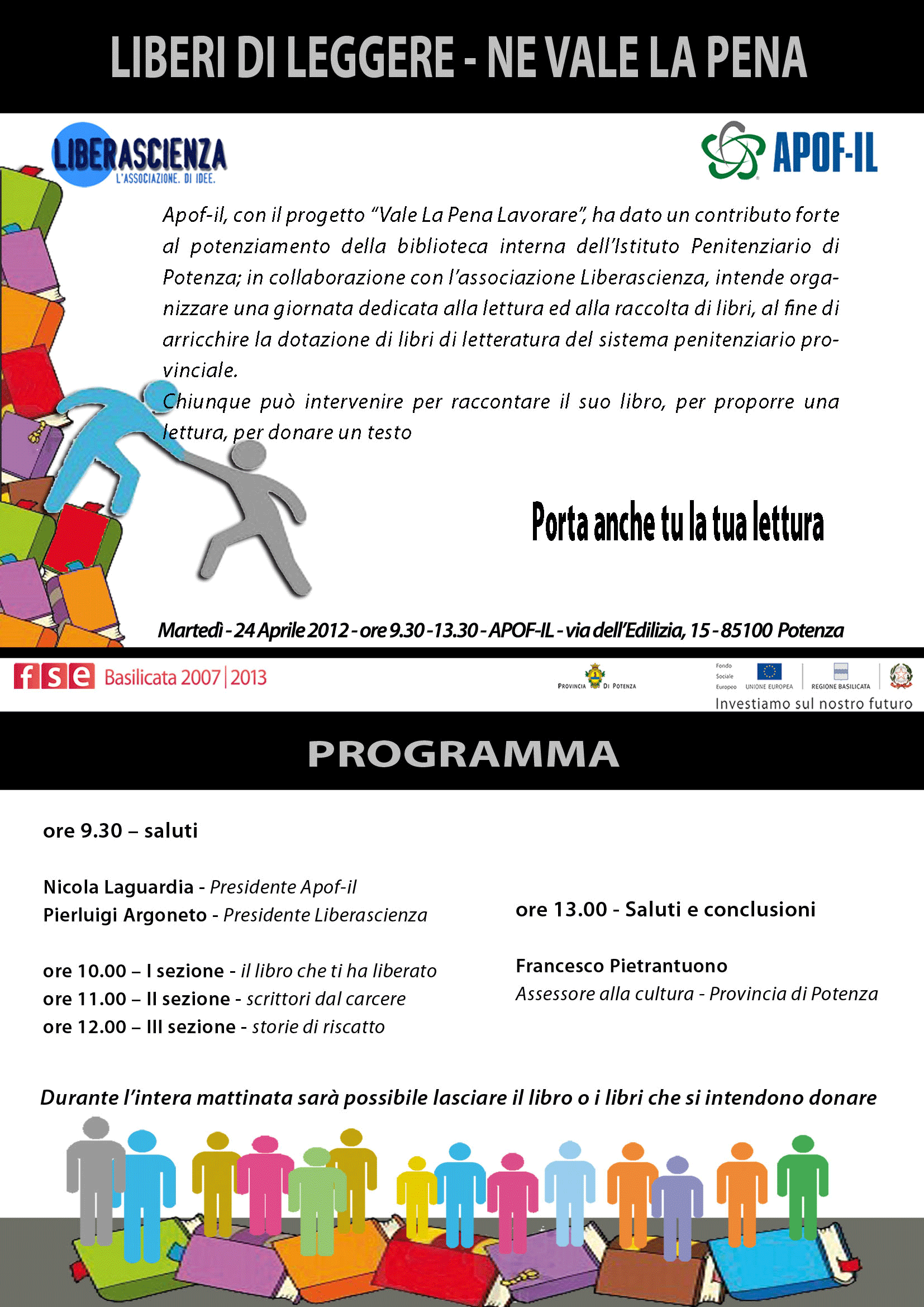 L’iniziativa promossa dall’Apofil, con il progetto “Vale La Pena Lavorare“, in collaborazione con l’associazione Liberascienza, è finalizzata al potenziamento della biblioteca interna dell’Istituto Penitenziario di Potenza.