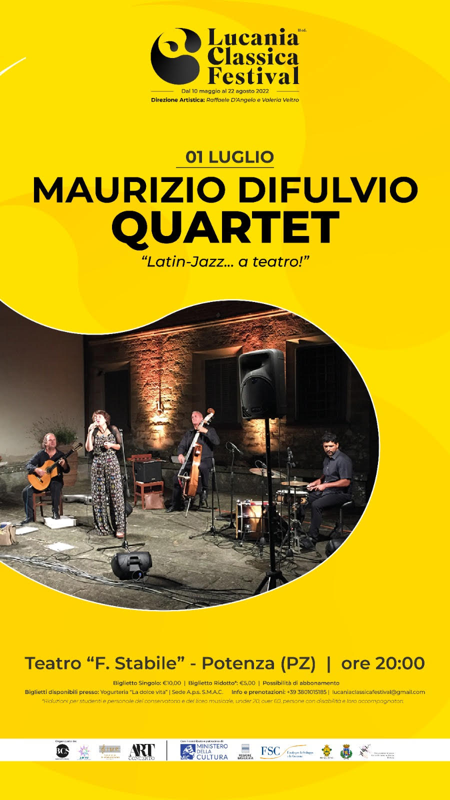 Chich-korea, Stevie Wonder, Sting, Di Capua, Piazzolla: sono solo alcuni dei grandi autori di musiche presenti in programma, in occasione del nono concerto della seconda Edizione Lucania Classica Festival realizzata dalla Direzione artistica di Raffaele D’Angelo e Valeria Veltro. L’Evento è fissato per venerdì 1° Luglio 2022 alle ore 20:00 presso il Teatro F. Stabile di Potenza. Il titolo “Latin-jazz…a Teatro!” è una perfetta rappresentazione della particolare atmosfera creata dalla singolare unione dell’ affascinante ambiente teatrale con i diversi ritmi della musica Jazz, Latina e Pop songs, interpretata dal Maurizio Di Fulvio Quartet.