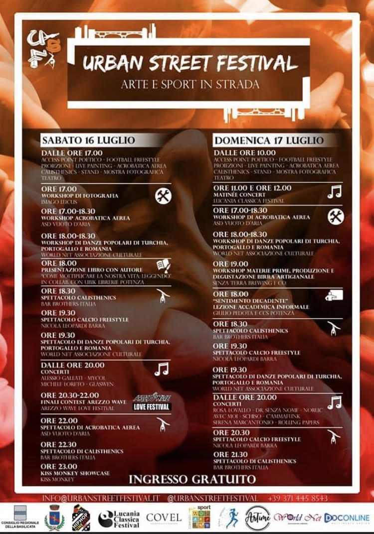 15 Luglio 2022 Urban street festival 3° edizione16 e 17 luglio 2022Parco Montereale – Potenza LocandinaDownload ProgrammaDownload