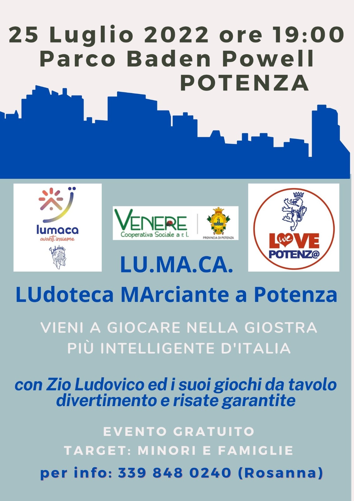 Arriverà a Potenza il 25 luglio, al Parco Baden Powell, la carovana dell’associazione Zio Ludovico, una LUDOTECA mobile allestita su CAMPER.