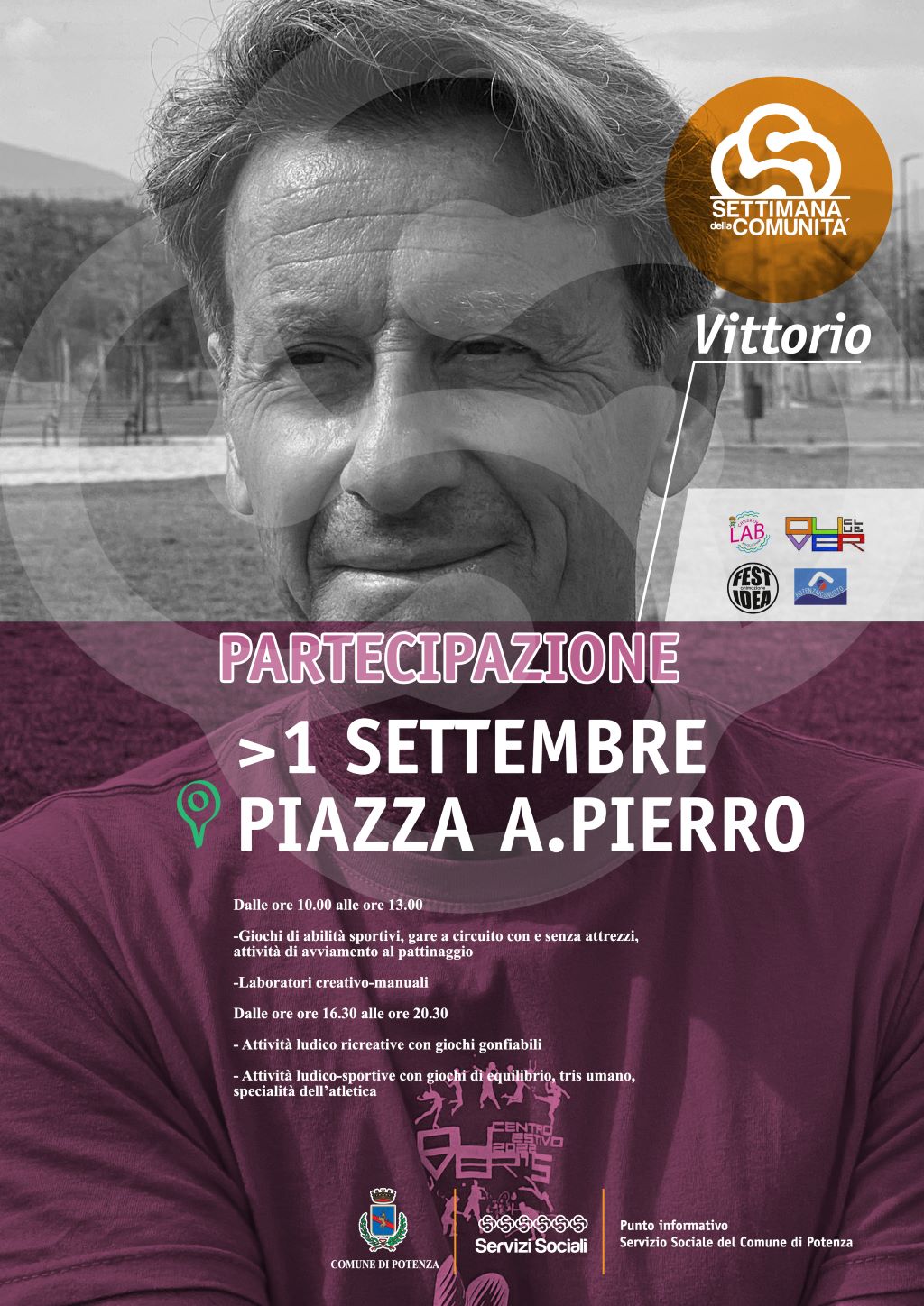 L’evento sociale “Settimana della Comunità” – anno 2022 dell’Amministrazione comunale è frutto di una azione di coprogettazione dell’Amministrazione comunale con Enti del Terzo Settore con l’obiettivo di favorire l’inclusione sociale tramite lo strumento della cooperazione e lo sviluppo delle relazioni all’interno della comunità, la promozione di eventi aperti a tutta la cittadinanza valorizzando il centro storico e i quartieri cittadini, con particolare attenzione a quelli più periferici, garantendo in essi la partecipazione attiva dei cittadini, delle famiglie, dei bambini, dei ragazzi e dei giovani.