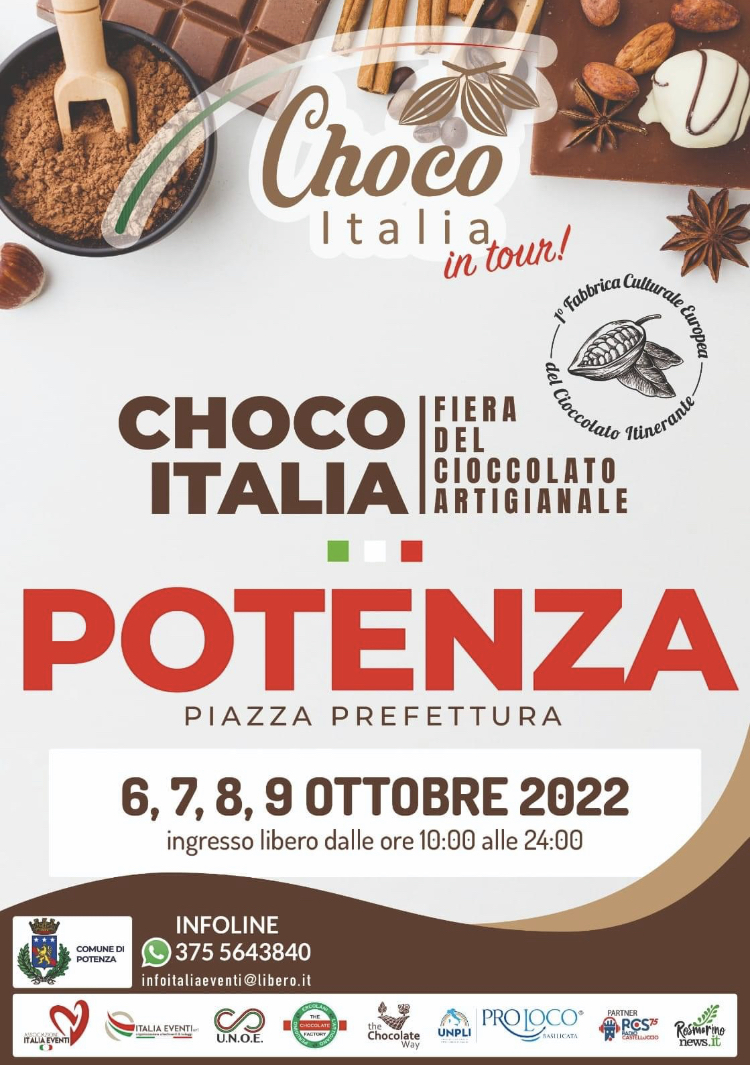 6 Ottobre 2022 Choco Italia in tour Fiera del cioccolato artigianalePiazza M. Pagano – Potenza6-7-8 e 9 ottobre 2022, ore 10/24Ingresso libero LocandinaDownload