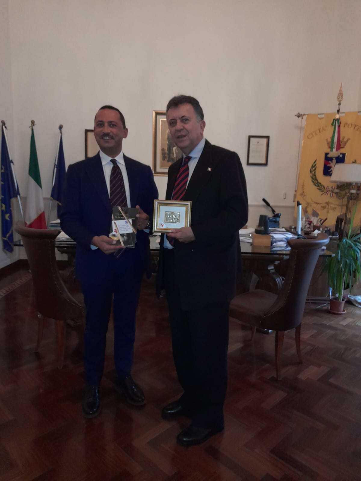 Il Sindaco di Potenza, ha fatto cenno a un suo viaggio in Messico, “nel corso del quale ho avuto la possibilità di conoscere, pur se in maniera non approfondita, una realtà che fa della gioia e della ospitalità due peculiarità che sorprendono positivamente l’ospite”. L’Ambasciatore ha quindi suggerito la possibilità di attivare percorsi comuni che possano individuare nei gemellaggi una via privilegiata per favorire scambi culturali, artistici ed economici tra una o più città messicane e Potenza, proposta che è stata accolta favorevolmente da Guarente. L’Ambasciatore, prima di uno scambio di doni, ha infine ricordato di aver concordato con il Console Onorario del Messico in Puglia, responsabile anche per la Basilicata, Francesco Maldarizzi, di favorire più visite dello stesso Console in terra lucana, proprio per attivare politiche finalizzate all’incremento dei rapporti culturali ed economici.