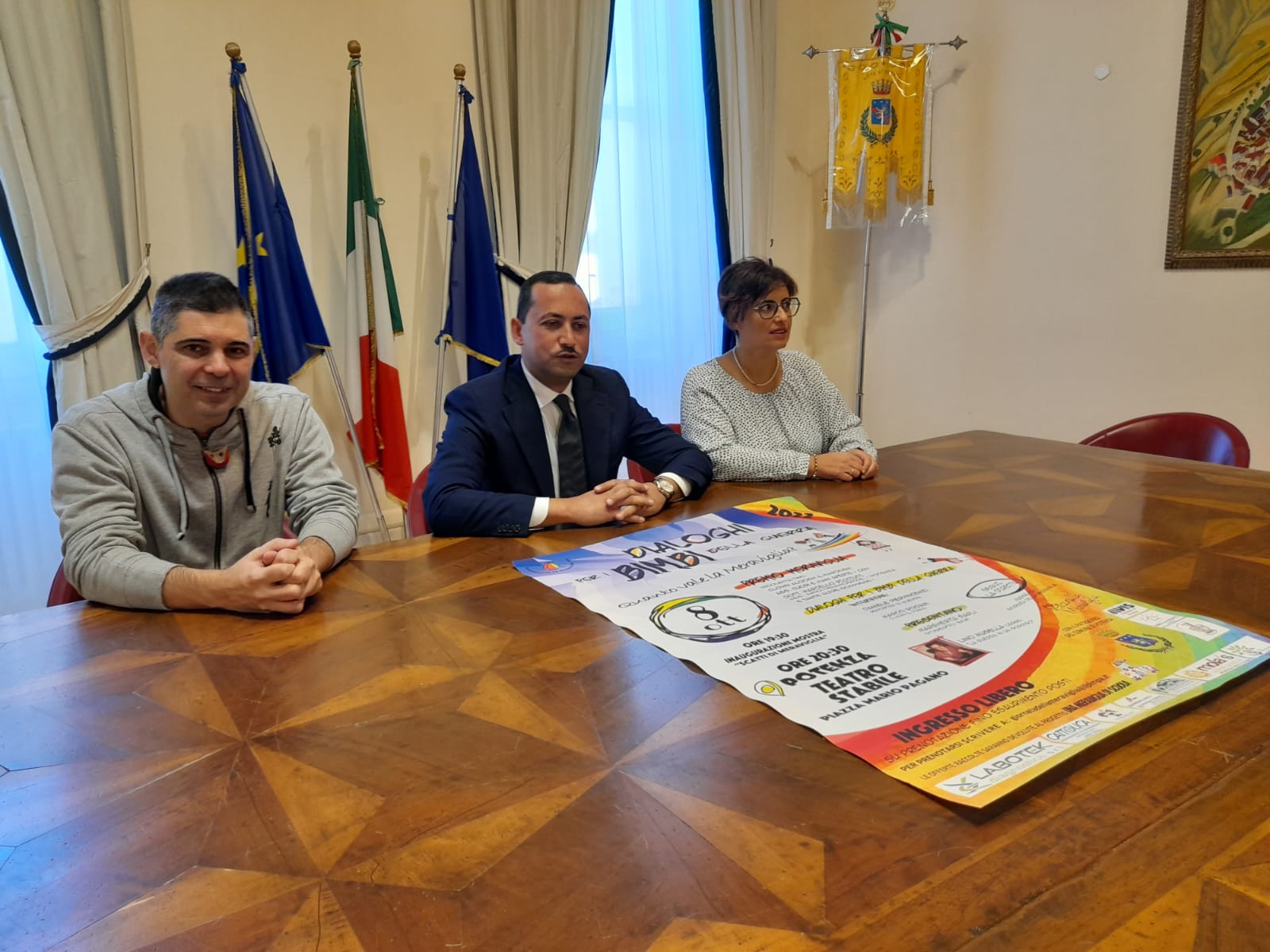 7.10.2022 – ore 12,15: Appuntamento fissato per la serata di domani, sabato 8 ottobre, al teatro Stabile di Potenza, a cominciare dalle 19,30 con il ‘Premio nazionale Meraviglia’. I dettagli della manifestazione, giunta alla seconda edizione, organizzata dall’associazione ‘Per far sorridere il cielo’, in collaborazione e con il patrocinio del Comune di Potenza, l’Avis di Basilicata, ‘Vip Clown’ di Venosa, e tantissime altre realtà associative italiane, sono stati illustrati nel Palazzo della Cultura a Potenza, nel corso di una conferenza stampa. Presenti all’incontro con i giornalisti il Sindaco di Potenza, Mario Guarente, il claun Pimpa, e la presidente di Avis Basilicata, Sara De Feudis. La serata celebrativa, ad ingresso libero, è stato spiegato nel corso dell’incontro, avrà inizio alle 19,30 con l’inaugurazione della mostra ‘Scatti di meraviglia’, alle 20,30 la cerimonia di premiazione presentata dai giornalisti Margherita Sarli e Roberto Bof. A ricevere il riconoscimento, ideato da Marco Rodari, il clown Pimpa, presidente dell’associazione ‘Per far sorridere il cielo’, saranno Nicoletta Tinti, ex ginnasta olimpica diventata paraplegica a causa di un’ernia discale attualmente insegnante di danza; i claun Aloosh e Maroosh, impegnati a regalare sorrisi ai bambini ricoverati nell’ospedale di Gaza; il medico Marcello Ricciuti, direttore dell’hospice dell’Azienda ospedaliera San Carlo di Potenza e i membri dell’associazione di volontariato ‘Amici dell’Hospice’ del capoluogo; l’associazione ‘Cuore e mani aperte’ di Lecce e i bambini di Afragola che hanno organizzato la “Giornata della meraviglia”. Inoltre un premio a sorpresa tutto lucano. Nel corso della serata Marco Rodari, con esperti del settore, dialogherà di bambini e guerra; Lino Musella leggerà versi de ‘La guerra in un sorriso’. Per il Sindaco di Potenza, Mario Guarente, si tratta di “una straordinaria iniziativa, con un forte valore anche didattico, in quanto consentirà a piccoli e grandi di comprendere meglio quanto sta accadendo in Ucraina e in tutti i drammatici scenari di guerra, con persone eccezionali che mettono a rischio le proprie vite per portare in quelle stesse realtà un sorriso sui volti di chi soffre. Trasferire esempi positivi alle nuove generazioni ritengo sia imprescindibile per sostituire i modelli negativi che oggi imperversano ovunque”. Soddisfazione è stata espressa dalla presidente di Avis Basilicata, Sara De Feudis. “E’ un onore per noi ospitare un evento così bello che rappresenta la continuità con il progetto che alcune Avis portano avanti da anni con impegno diffondendo semi di pace, nelle scuole e in tutti i luoghi in cui si trova la sensibilità di ascoltare messaggi importanti e purtroppo sempre più attuali. Ringrazio il Sindaco e il Comune di Potenza perché ha da subito mostrato disponibilità ad ospitare l’iniziativa”. Il ‘Premio nazionale Meraviglia’ arriva a distanza di una settimana dalla ‘Giornata della Meraviglia’, anch’essa alla seconda edizione e che anche quest’anno coinvolgerà 60 diverse piazze in tutto il mondo, alcune anche della Basilicata. “Dopo l’edizione dello scorso anno organizzata a Varese, siamo grati dell’ospitalità offerta dal Comune di Potenza e della collaborazione dell’Avis e di tante altre realtà di volontariato attive in Italia – ha spiegato Marco Rodari, in arte ‘il Pimpa’, nel corso della conferenza stampa- perché parlare delle fatiche che affrontano i bambini della guerra e sensibilizzare su tali argomenti e sull’importanza della meraviglia nella vita di ciascuno noi è una missione importante. Perché un bambino a cui regali meraviglia sarà portatore di pace”.