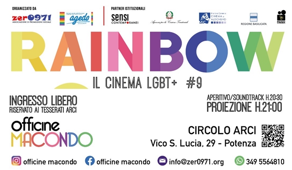 IX edizione “Rainbow, il Cinema LGBT+”, rassegna dedicata alle rappresentazioni delle identità di genere e di orientamento sessuale organizzata da Zer0971 associazione di Promozione Sociale in collaborazione con Agedo, associazione di genitori, parenti e amici di persone omosessuali.