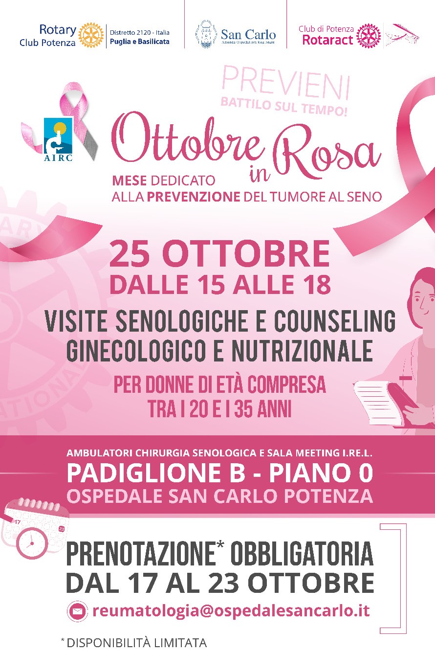 Prenotazione obbligatoria dal 17 al 23 ottobre al seguente indirizzo: reumatologia@ospedalesancarlo.it.