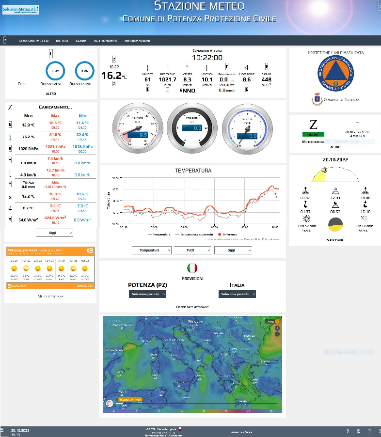 20.10.2022 – ore 13: “Ringrazio i meteorologi del gruppo comunale di Protezione civile, in particolare Ernesto Piragine e Gaetano Brindisi, tutti i componenti della Protezione civile comunale e il suo responsabile Pino Brindisi, per aver concretizzato l’attivazione di questo utilissimo strumento per la nostra comunità”. Queste le parole del sindaco Mario Guarente nel giorno dell’attivazione della nuova Stazione meteo a disposizione del Comune di Potenza. “Come stabilisce il Codice della Protezione civile – spiega il responsabile Brindisi – sono attività di protezione civile quelle volte alla previsione, prevenzione e mitigazione dei rischi, alla gestione delle emergenze e al loro superamento. La prevenzione consiste nell’insieme delle attività di natura strutturale e non strutturale, svolte anche in forma integrata, dirette a evitare o a ridurre la possibilità che si verifichino danni conseguenti a eventi calamitosi anche sulla base delle conoscenze acquisite per effetto delle attività di previsione. Abbiamo ritenuto necessario dotare il Comune di uno strumento di aiuto, aggiuntivo e non sostitutivo, del sistema di allerta meteo del Dipartimento di Protezione civile, una stazione meteorologica installata sul Palazzo di Città in piazza Matteotti, in grado di fornire, attraverso un processo di diagnosi e prognosi dei dati, una previsione meteorologica dettagliata temporalmente e localmente. I dati raccolti dalla stazione meteorologica forniranno informazioni indispensabili per attivare, in caso di vento forte, precipitazioni nevose, temporali o nubifragi, presenza di ghiaccio sulle strade, le procedure standardizzate nei programmi di pianificazione delle emergenze e, quindi, di soccorso alla popolazione” conclude Brindisi. Le indicazioni della Stazione meteo sono consultabili a qualsiasi ora del giorno e della notte in tempo reale, al link https://stazioni4.soluzionimeteo.it/pcpotenza/indexDesktop.php e presto si avvarranno delle immagini in diretta di più webcam, che inquadreranno zone urbane e dell’hinterland cittadino.