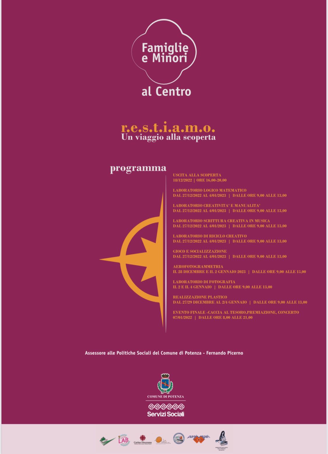 17.12.2022 – ore 14,55: Al via domani le attività di R.E.S.T.I.A.M.O. – UN VIAGGIO ALLA SCOPERTA, il progetto promosso dalla Società Cooperativa Sociale ADAN assieme a numerosi partner, nell’ambito della coprogettazione “Minori e famiglie al Centro” del Comune di Potenza.