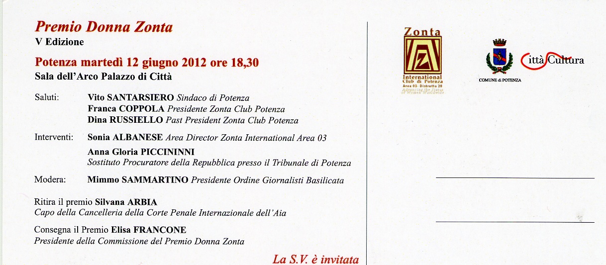 ritira il premio: Silvana Arbia, Capo della Cancelleria della Corte Penale Internazionale dell’Aia;