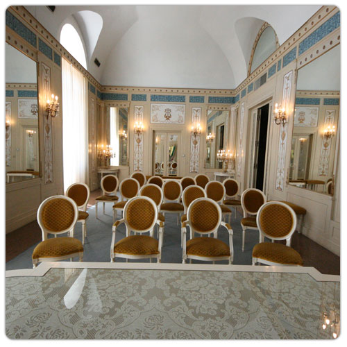 Unicamente nella Sala degli Specchi, è possibile effettuare la cerimonia con rinfresco ed in questo caso il costo dell’utilizzo della Sala è pari ad € 400.
