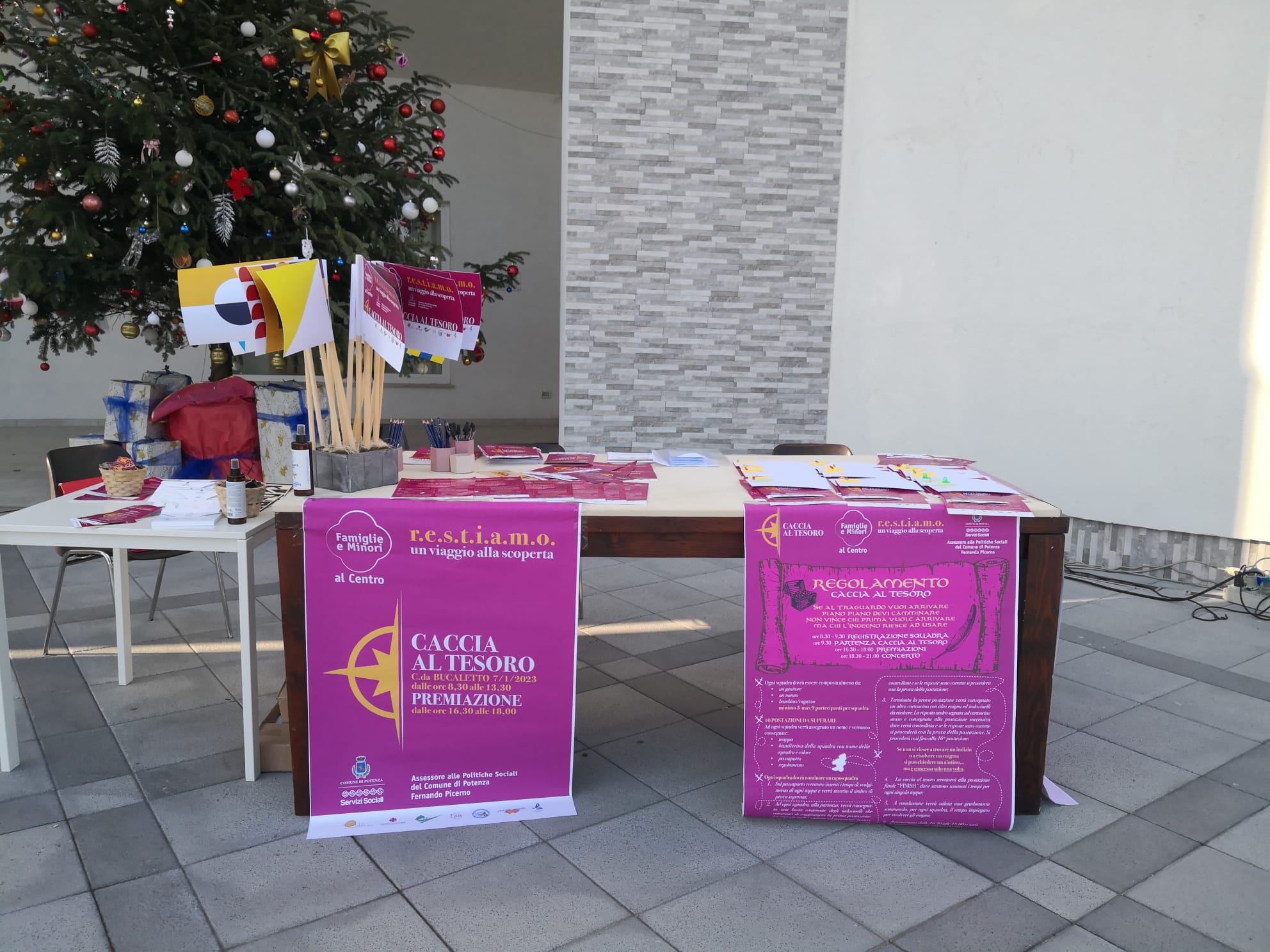 9.01.2023 – ore 9,50: “Successo per il gran finale del progetto R.E.S.T.I.A.M.O. – UN VIAGGIO ALLA SCOPERTA. Nove squadre, oltre 60 bambini che, con i loro genitori e i loro nonni si sono ‘dati battaglia’ alla ricerca del tesoro nel rione Bucaletto a Potenza”. Così l’assessore alle Politiche sociali Fernando Picerno, presente insieme all’assessore alle Politiche giovanili e Pari opportunità Vittoria Rotunno e al dirigente del Dipartimento Salute, Sicurezza e Solidarietà Sociale, Servizi alla Persona, Giuseppe Romaniello .