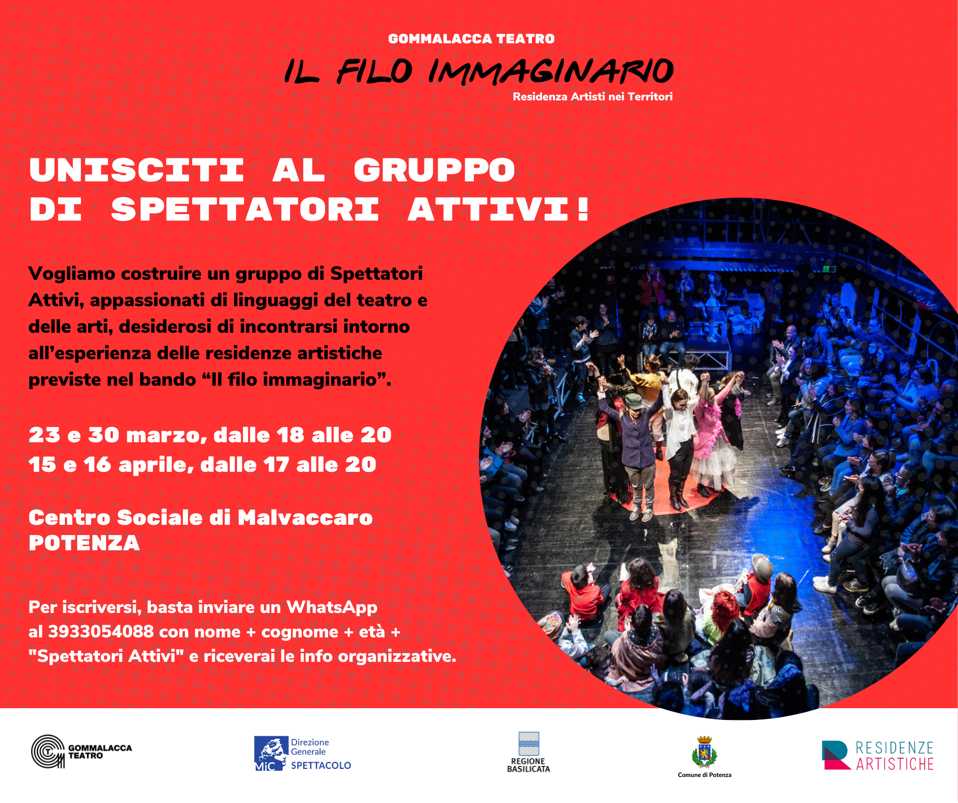 Gommalacca teatro indice una Call per la costituzione di un gruppo di Spettatori Attivi, appassionati di linguaggi del teatro e delle arti, desiderosi di incontrarsi intorno all’esperienza delle residenze artistiche previste nel bando “Il filo immaginario”.