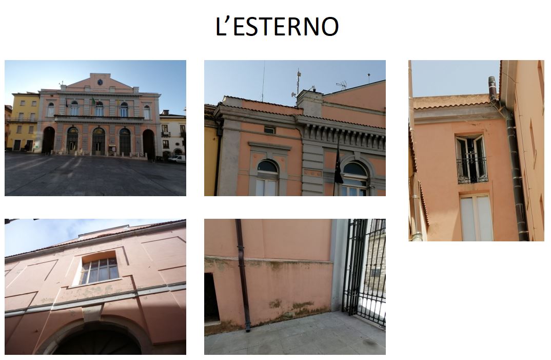Sull’esterno si procederà al ripristino, sul prospetto di piazza Pagano, la soluzione riguardo a problemi di infiltrazione e alcune tegole smosse, saranno ritinteggiate le parti di facciata interessate. Il prospetto su vico Stabile sarà invece integralmente ritinteggiato, così come, nelle gallerie laterali, lo zoccolo di attacco a terra. Tutti gli infissi esterni in legno saranno sottoposti a una generale opera di manutenzione. Su piazza Pagano sarà rivista l’illuminazione, con l’inserimento di corpi illuminanti a led”.