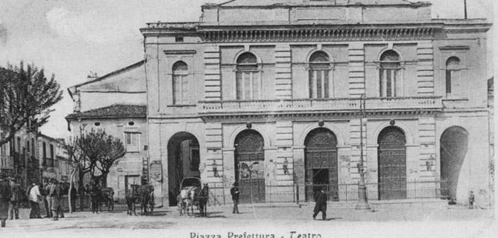 “Nel 1838 viene affidato l’incarico della progettazione dell’edificio all’ingegnere Gaetano De Giorgio. Il progetto viene approvato nel 1854 con le varianti degli architetti Antonio Ferrara e Gerardo Grippo e solo nel 1857 si ha la stesura del progetto definitivo e l’inizio dei lavori. La costruzione del teatro vede il succedersi di molteplici tecnici e appaltatori fino al 1878, anno in cui viene stilato il verbale di ultimazione dei lavori. Il 26 gennaio 1881 viene inaugurato il teatro cittadino con l’intitolazione al maestro di musica potentino Francesco Stabile (1801-1860) e nel 1884 viene eseguito il collaudo dell’opera da parte dell’ingegnere Grippo. La scarsa manutenzione del teatro agli inizi degli anni ’60 del XX secolo porta l’Amministrazione comunale a prevedere nel PRG del 1966 la demolizione di tutto l’isolato, teatro compreso. Solo con l’imposizione del vincolo monumentale da parte del Ministero della Pubblica Istruzione nel 1974 si iniziano a prevedere dei lavori adeguati di restauro a cura dell’architetto Dante Maggio e dell’ingegnere Franco Gigli con la riapertura definitiva il 29 marzo 1990.