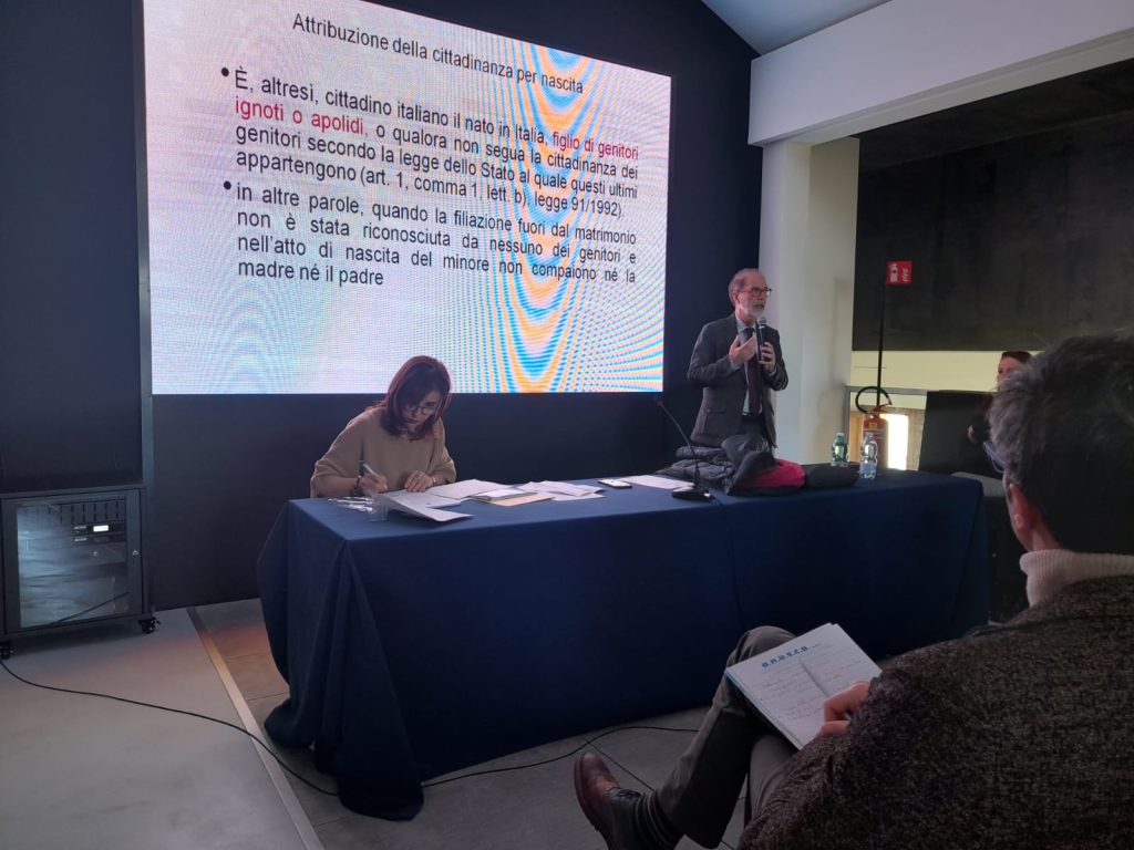 Attribuzione della cittadinanza per nascita, per riconoscimento di filiazione, per adozione di minore, per nascita e residenza interrotta in Italia, per convivenza con il cittadino che acquisisce lo status di cittadino, tutto ciò che concerne attestazioni, accertamenti, iscrizioni, trascrizioni, annotazioni e relativi adempimenti, sono stati affrontati anche al termine della relazione, nel corso di un dibattito che ha previsto l’illustrazione di quesiti e casi pratici. Le richieste di cittadinanza italiana da parte di cittadini stranieri sono numerose, e la normativa e le casistiche possibili necessitano di aggiornamenti ai quali il corso è stato finalizzato. Gradimento è stato espresso dai partecipanti, che hanno auspicato la prosecuzione del percorso di formazione intrapreso, chiedendo che lo stesso riguardi anche i servizi anagrafici e quelli elettorali nel loro complesso.