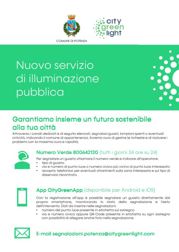 • inviando una mail a: segnalazioni.potenza@citygreenlight.com