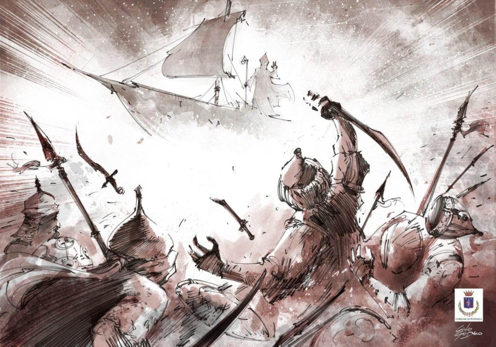 23.05.2023 – ore 11,50: “Già solo osservando il bozzetto preparatorio per il murales dedicato a San Gerardo realizzato da Giulio Giordano, si ha l’idea di cosa sarà in grado di esprimere l’opera maestosa che si andrà a realizzare nelle scale mobili, tra gli ingressi di viale Dante e via Vespucci”, questa la riflessione dell’assessore alla Cultura e al Turismo Stefania D’Ottavio. “L’artista potentino e disegnatore conosciuto a livello internazionale per i disegni di Martin Mystère e Diabolik, muovendo da quell’immagine farà nascere l’opera di 6 metri per 3 metri, fortemente voluta dal Comune di Potenza e che sarà realizzata tra la mattina del 24 maggio alla giornata del 27 maggio, qualche giorno prima della Storica Patrata dei Turchi. Il murales rappresenterà un momento epico e importante dei racconti sul Santo, la cacciata dei Turchi dal suolo Lucano. Un enorme quadro che potremmo definire dirompente, nel messaggio, nella fattura, nella capacità che avrà di conquistare lo sguardo e l’anima di quanti avranno la fortuna di ammirarlo” conclude la D’Ottavio. La realizzazione sarà aperta al pubblico, dalle ore 10 alle 19, delle giornate nelle quali l’artista lavorerà sul muro, i visitatori potranno essere spettatori della creazione dell’artista in tutte le fasi della realizzazione.