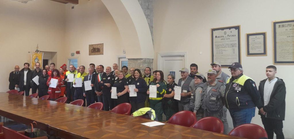 6.6.2023 – ore 16,40: “Una edizione da ricordare per qualità della proposta culturale realizzata, per quantità di partecipanti, sia nella veste di figuranti, sia come staff dell’organizzazione, per numero di presenze, oltre 41.000 i passaggi nelle scale mobili cittadine, nel corso delle festività patronali”. Così il Sindaco di Potenza Mario Guarente, insieme al responsabile della Protezione civile comunale Giuseppe Brindisi, ha introdotto l’incontro con dirigenti e componenti degli uffici comunali, il direttore del 118, Serafino Rizzo, i soccorritori e le associazioni di volontariato in occasione della consegna di attestati di riconoscimento per l’opera prestata nel corso dell’edizione 2023 della Storica Parata dei Turchi. “Quattro ambulanze del 118 e altre 8 delle associazioni pronte a intervenire, 7 squadre a piedi composte da soccorritori e volontari, un totale di 141 membri di 9 associazioni di volontariato di Protezione civile, oltre al personale del Comune, sono alcuni dei numeri che attestano l’imponente impegno organizzativo e realizzativo di una festa, resa ancor più straordinaria anche dal vostro prezioso lavoro. Vi ringrazio tutti e uno per uno e, con me, lo fa certamente tutta l’Amministrazione comunale e Potenza che, grazie a voi, ha mostrato il suo lato più bello, gestendo coralmente un evento che va ben oltre i confini cittadini e regionali. Ancora grazie per quello che avete fatto e fate in tutti gli appuntamenti nei quali siete chiamati a intervenire, grazie per la vostra professionalità e grazie per l’amore che dimostrate nei confronti di Potenza e dei potentini”. Il pomeriggio si è poi concluso con la consegna delle pergamene.