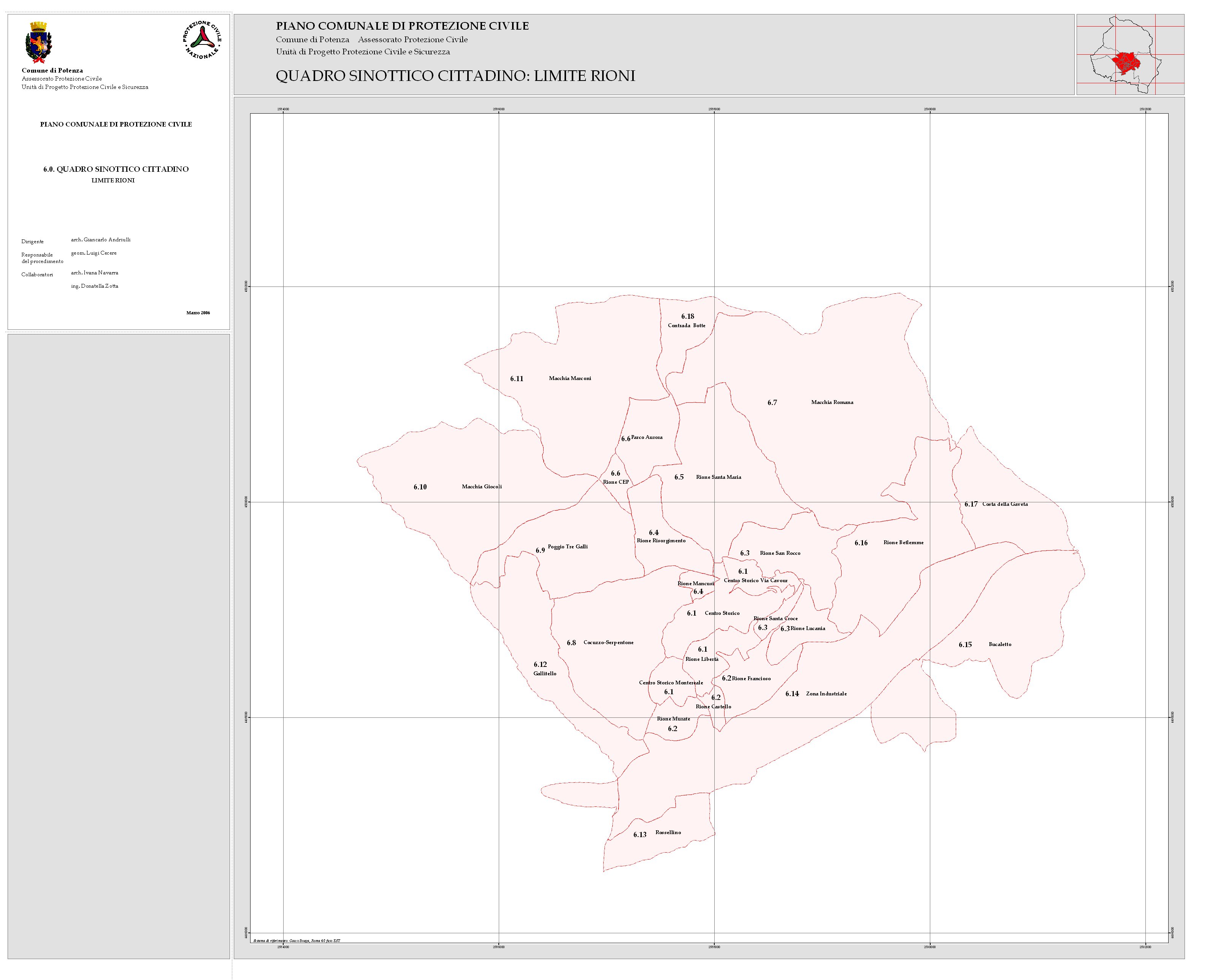 Il piano di Protezione Civile della città di Potenza, presentato il 15 maggio 2006 è un valido strumento per la salvaguardia, il controllo e l’intervento sul territorio, finalizzato alla creazione di un’autentica cultura nel settore.