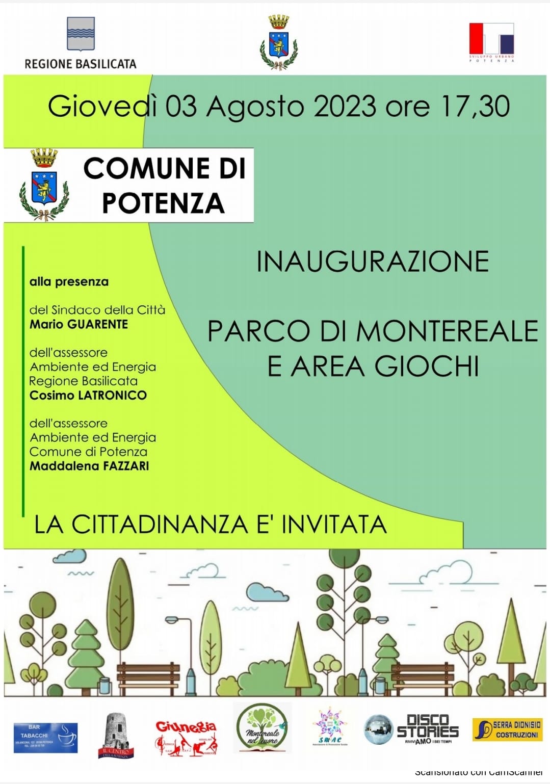 01.08.2023 – ore 18: Giovedì 3 agosto alle ore 17,30 si svolgerà l’inaugirazione del nuovo parco di Montereale. I lavori di riqualificazione nell’ambito dell’Investimento Territoriale Integrato (ITI) di Sviluppo Urbano – dichiara l’assessore all’ambiente del comune di Potenza, Maddalena Fazzari – “hanno interessato alcune aiuole, il restauro della fontana, il rifacimento dell’impianto di irrigazione, di illuminazione e di tutto il parco giochi che è dotato di pavimentazione antitrauma e di giochi inclusivi per tutti i bambini. Sono state piantumate, inoltre, nuove essenze tutte del nostro territorio”.
