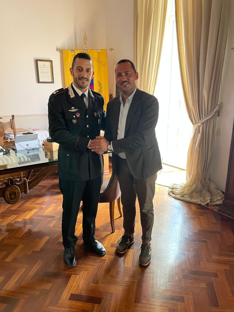 4.9.2023 – ore 14,20: E’ stato ricevuto dal Sindaco di Potenza Mario Guarente, nel suo ufficio al secondo piano del Palazzo di Città, il maggiore dei Carabinieri Alberto Calabria, nuovo comandante del Nucleo Tutela Patrimonio Culturale Carabinieri a L’Aquila, che lascia, dopo 4 anni, il comando della Compagnia Carabinieri di Potenza. Nel corso del cordiale incontro il Sindaco ha ringraziato l’ufficiale dell’Arma, nativo di Messina, per “l’ottimo lavoro svolto nel capoluogo lucano e per la preziosa opera di controllo del territorio, attraverso un impegno volto alla prevenzione e alla repressione dei reati. La mia riconoscenza al maggiore Calabria per aver messo a disposizione della nostra comunità la sua preparazione e la sua notevole esperienza, pur essendo ancora molto giovane, maturata nei precedenti incarichi rivestiti al comando Nucleo Operativo e Radiomobile della Compagnia Carabinieri di Siracusa e della Compagnia di Borgo San Dalmazzo. Nel salutarla – ha concluso il Sindaco – le auguro di proseguire al meglio il suo percorso professionale anche nel nuovo e prestigioso ruolo che andrà a rivestire a L’Aquila”.