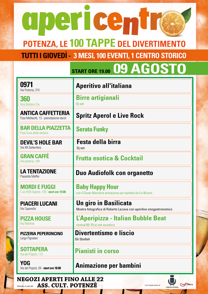 Giovedì 9 agosto, ore 19.00