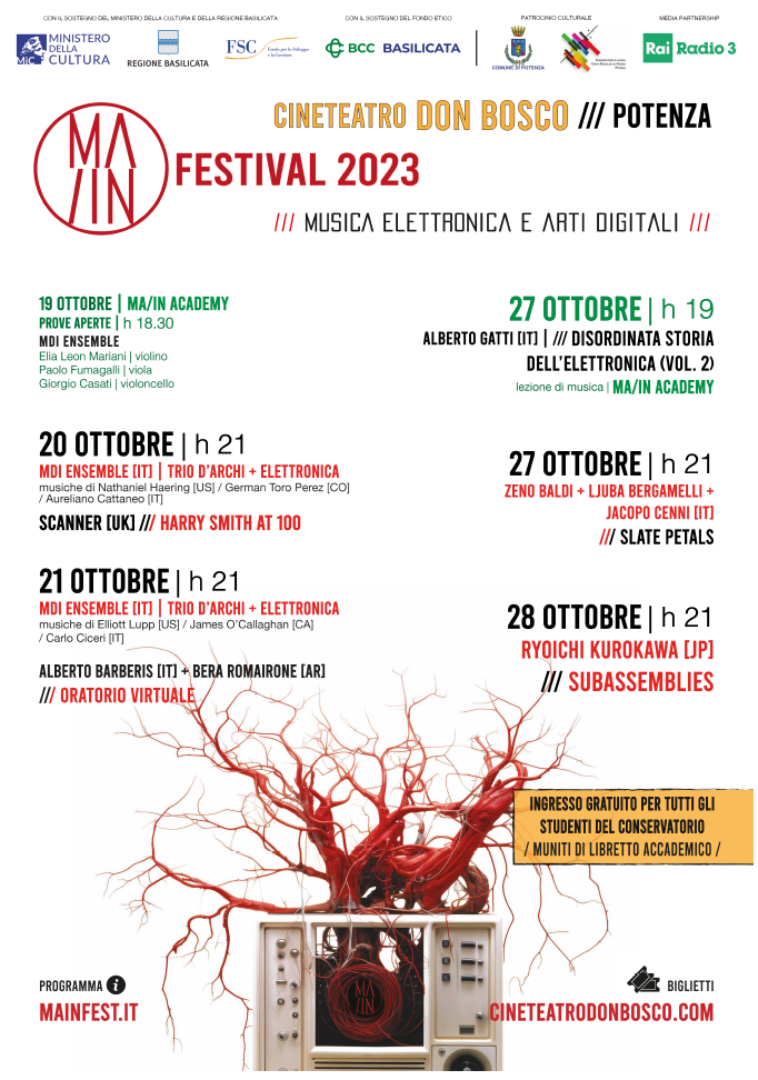 Il MA/IN è sostenuto dal Ministero della Cultura, dalla Regione Basilicata, con la partnership della BCC Basilicata, del Conservatorio Carlo Gesualdo da Venosa e il patrocinio del Comune di Potenza.
