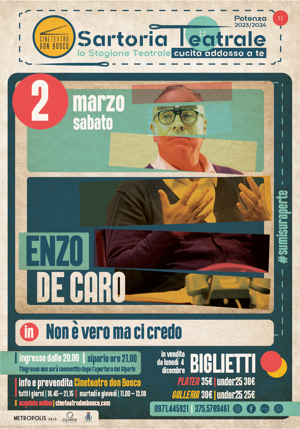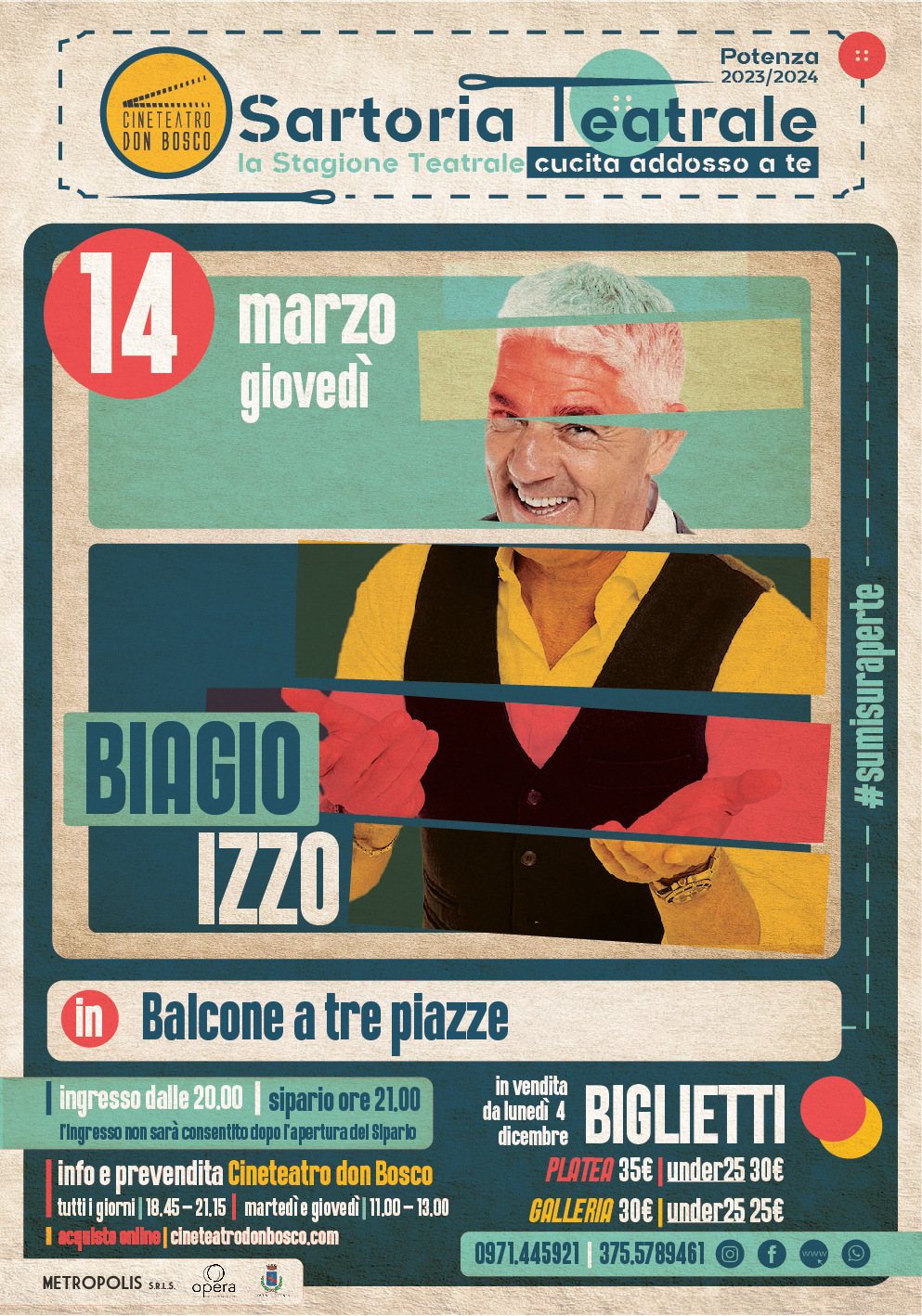 Sipario: 21:00. Ingresso non consentito dopo apertura sipario.