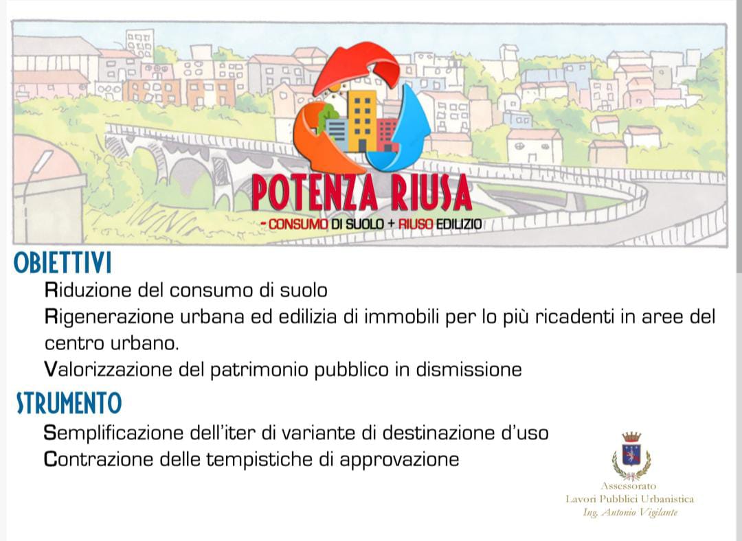 23.01.2024 – ore 15.40: “La proposta di deliberazione relativa al riuso degli immobili pubblici dismessi dalla funzione pubblica – evidenzia in una nota l’assessore all’Urbanistica Antonio Vigilante – è una iniziativa che mi ha visto protagonista fin dalla modifica normativa alla legge regionale 23/99, per la quale, grazie alla collaborazione e alla condivisione dell’allora assessore Gianni Rosa, si è portato in approvazione un emendamento alla norma che ha consentito una semplificazione della procedura di cambio di retino urbanistico per gli immobili dismessi dalla funzione pubblica. Il Comune di Potenza, ricordo al consigliere Falconeri che ha sollevato il tema in un suo recente intervento, attraverso il bando ‘Potenza Riusa’ ha dato massima comunicazione della sopravvenuta opportunità, proprio in relazione alla volontà di incentivare il più possibile gli esercizi di riuso del patrimonio immobiliare dismesso dalla funzione pubblica. Il bando per il Comune di Potenza è stato anche l’occasione per porre rimedio ad alcune criticità del regolamento urbanistico, nella sua ricognizione, contemplando anche edifici non pubblici come ‘Armatura Urbana’. Il tema del riuso degli immobili dismessi dalla funzione pubblica è, inoltre, un tema di attualità anche della politica nazionale, constato come, nei punti della strategia del Mit sul ‘Piano Casa’, sia possibile leggere come, tra le indicazioni dei tavoli di lavoro, sia presente il ‘riordino e semplificazione delle procedure di valorizzazione e recupero degli immobili pubblici dismessi, in modo da individuare le misure di semplificazione necessarie a promuoverne la destinazione a obiettivi di edilizia residenziale’. Una questione che il Comune di Potenza, attraverso l’assessorato per il quale ho ricevuto la delega, ha avuto modo di analizzare con puntualità, lavorando con impegno nel merito già da due anni. Mi sia consentito di esprimere la mia riconoscenza a quanti mi hanno supportato e un minimo di orgoglio per aver portato la Città di Potenza a essere considerata avanguardia su un tema che oggi è stato indicato quale obiettivo nei documenti strategici del ministero delle Infrastrutture” conclude l’assessore Vigilante.