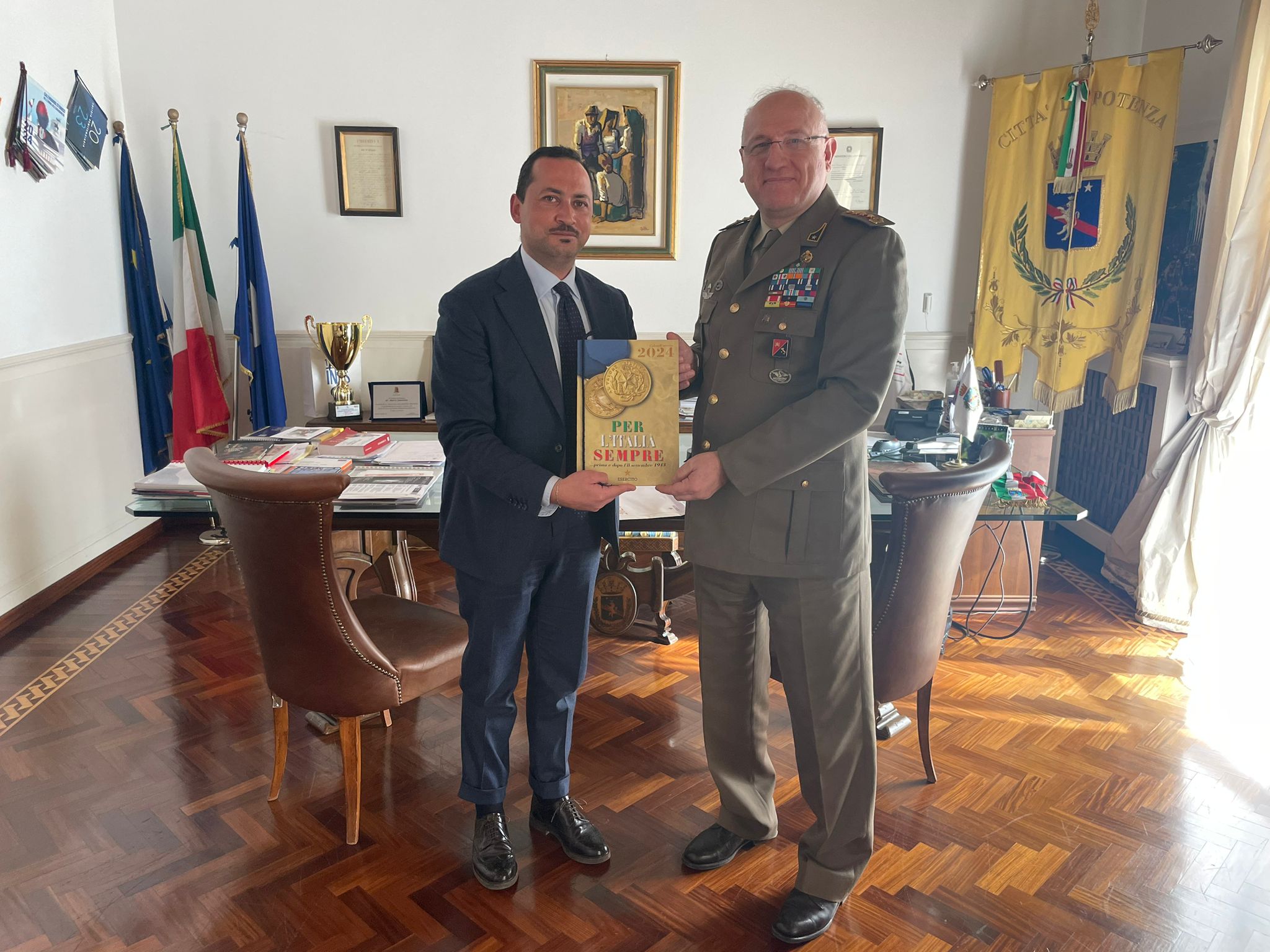 6.02.2024 – ore 12,30: Il Sindaco di Potenza Mario Guarente, nel suo ufficio del Palazzo di Città in piazza Matteotti, ha ricevuto la visita istituzionale del colonnello Gennaro Scotto di Santolo, che dallo scorso 26 gennaio, è il nuovo Comandante Militare Esercito ‘Basilicata’. Dall’incontro, svoltosi in un clima di serena cordialità, è emersa la reciproca e incondizionata disponibilità volta a migliorare la già lunga e consolidata sinergia tra le due Istituzioni. Il Sindaco ha sottolineato come “il rapporto tra l’esercito e la città sia contraddistinto da un legame solido e che affonda nella storia il proprio radicamento. Dai tristi eventi bellici a quelli calamitosi, il filo conduttore è sempre stato rappresentato dalla disponibilità, la professionalità e l’abnegazione con la quale i militari hanno saputo mettersi a disposizione per il bene della nostra comunità. A loro il ringraziamento di Potenza e l’auspicio di affrontare congiuntamente le sfide che il futuro vorrà presentarci”. Il Colonnello di Santolo ha ringraziato il Sindaco Guardate, confermando l’impegno nel consolidare i rapporti tra l’Esercito e la collettività potentina e lucana.