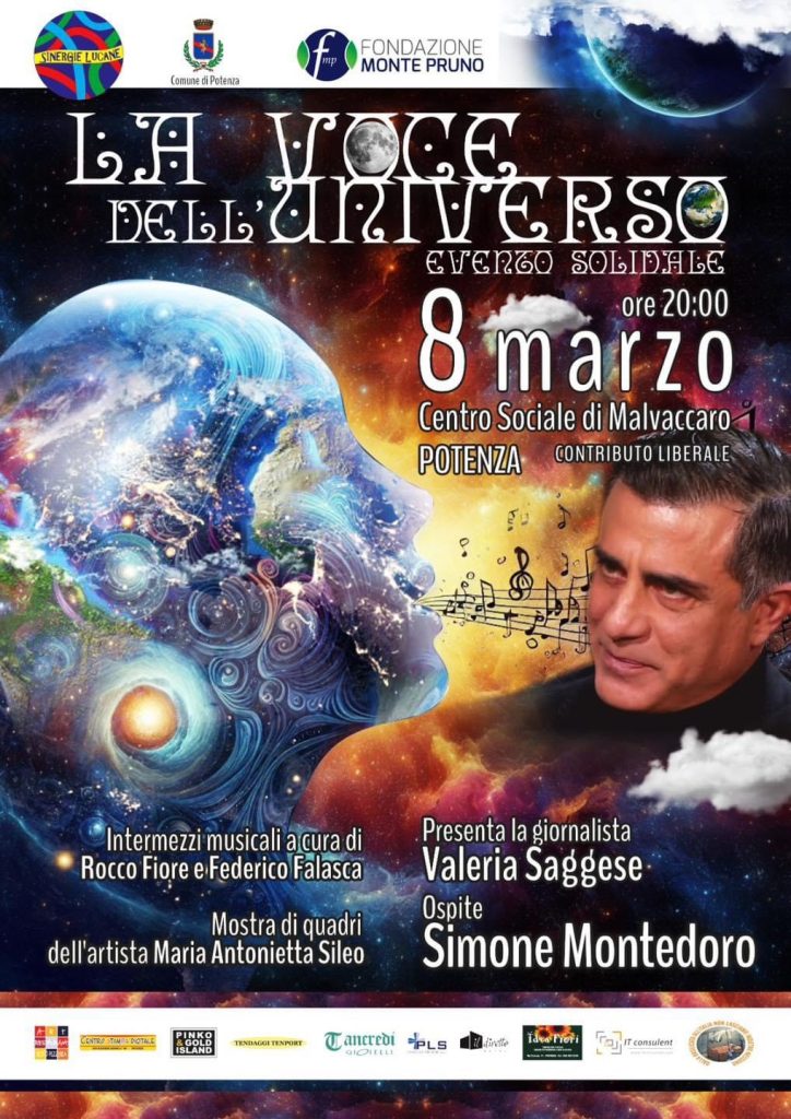 5.3.2024 – ore 10,15: L’8 marzo, nel Centro Sociale di Malvaccaro, Sinergie Lucane, Fondazione Monte Pruno e Comune di Potenza presentano ‘La voce dell’Universo’. Un evento dedicato al magico mondo delle donne che vedrà protagonista l’attore Simone Montedoro e la giornalista Valeria Saggese. Un viaggio nella musica, con le sonorità di Rocco Fiore e Federico Falasca, e nell’arte grazie ai quadri dell’artista Maria Antonietta Sileo. L’universo femminile, si compone, però, di una fetta di donne che non riescono più ad assolvere alla funzione di rivoluzionare il mondo a causa dei propri aguzzini. Con l’avvocato Roberta Fiore parleremo dell’importanza delle parole e del rinnovamento del modo di pensare.