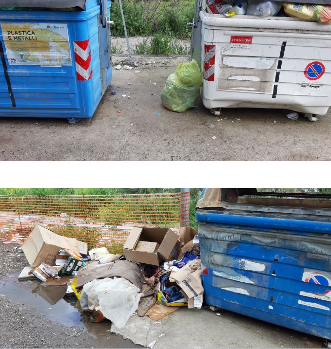 e) imbrattare i contenitori per la raccolta dei rifiuti;