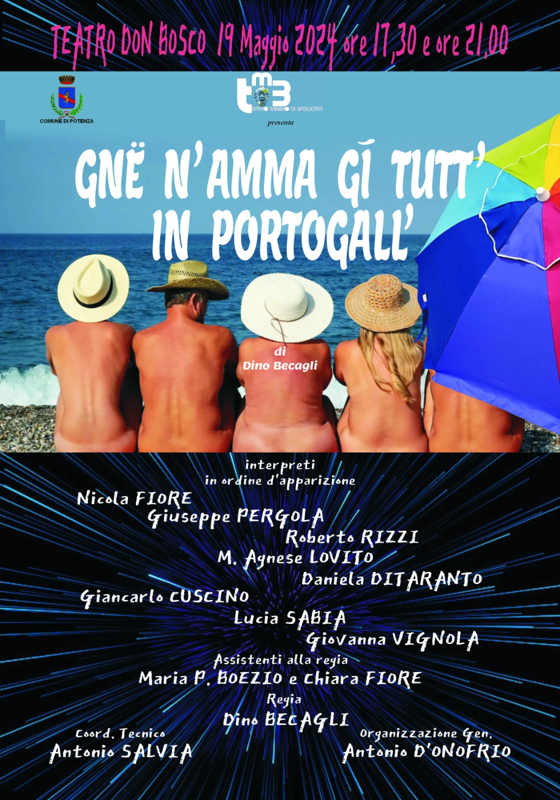 15.05.2024 – ore 10,15: Ai numerosi spettacoli allestiti dal Teatro Minimo di Basilicata nei suoi 20 anni di attività si aggiunge: GNȄ N’ AMMA GI’ TUTT’ IN PORTOGALL’, rappresentazione patrocinata dal Comune di Potenza, che l’ha inserita tra le iniziative del Maggio Potentino. Il nuovo lavoro di Dino Becagli andrà in scena il 19 maggio con le ‘prime’ in programma al Teatro Don Bosco alle ore 17,30 e alle 21. Due Atti strappa risate, tra battute e banalità che s’intrecciano a ricordi del tempo passato, quando si viveva felici anche nel bisogno – sintetizzano gli organizzatori. Sette personaggi, incontrandosi ora alla panchina di un parco, ora alla fermata dell’autobus, decidono di partire tutti insieme per il Portogallo, già paradiso fiscale per molti connazionali. Criticità urbane e sociali, microcriminalità, furti negli appartamenti, difficoltà nei trasporti e altri servizi pubblici, la carenze nella sanità, ne rafforzano il convincimento. Il destino, però, riserverà loro un diverso avvenire. Si tratta del primo lavoro prodotto nella nuova sede del Teatro Minimo, nella scalinata del Popolo, nel centro storico del capoluogo, che diventerà presto, assicura il presidente del sodalizio Nicola Fiore, “un attrezzato luogo di educazione e promozione culturale rivolto in particolare ai giovani, realizzato nella pancia della città antica, quasi fosse un ipogeo dove immergersi per scoprire l’essenza del teatro dal vivo, dove le emozioni sono di scena, facendo vivere le esperienze teatrali attraverso la scoperta, la formazione e la valorizzazione di nuovi talenti”.