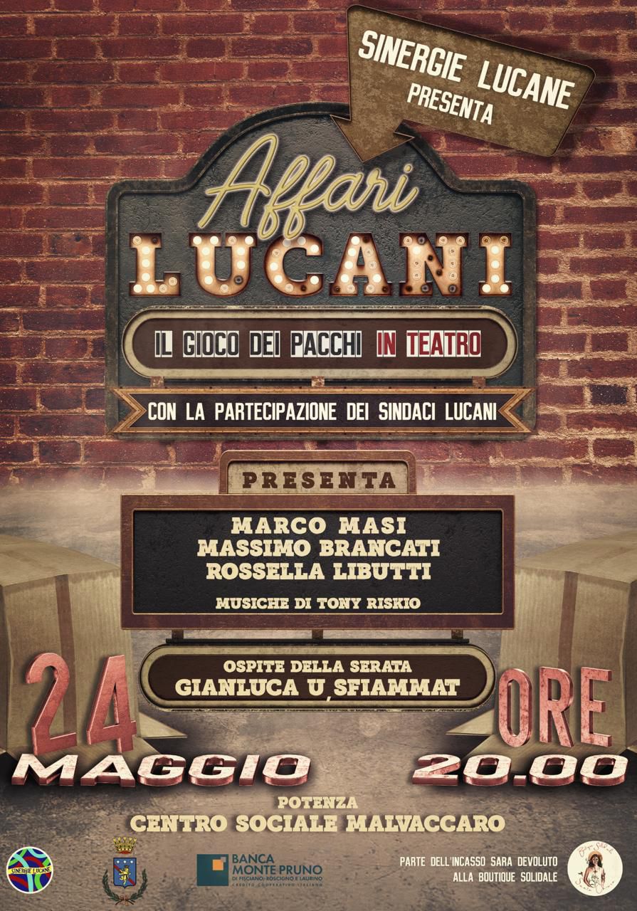 Venerdì 24 maggio 2024 alle ore 20 nel Centro Sociale di Malvaccaro di Potenza è in programma “Affari lucani”, il gioco dei pacchi a premi all’insegna della lucanità. L’evento è organizzato da Sinergie Lucane, Comune di Potenza e Banca Monte Pruno.