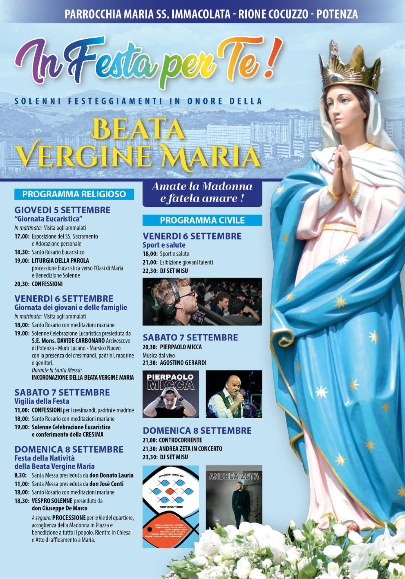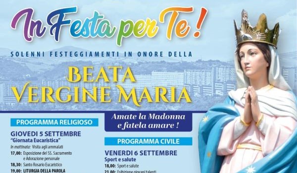 Festa in onore della Beata Vergine Maria con un ricco programma che prevede eventi religiosi e civili.