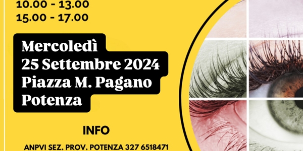 L’Associazione nazionale privi della vista e ipovedenti ETS – APS, sezione di Potenza offrirà alla cittadinanza un servizio gratuito di screening oculistico, mercoledì 25 settembre in piazza Mario Pagano.