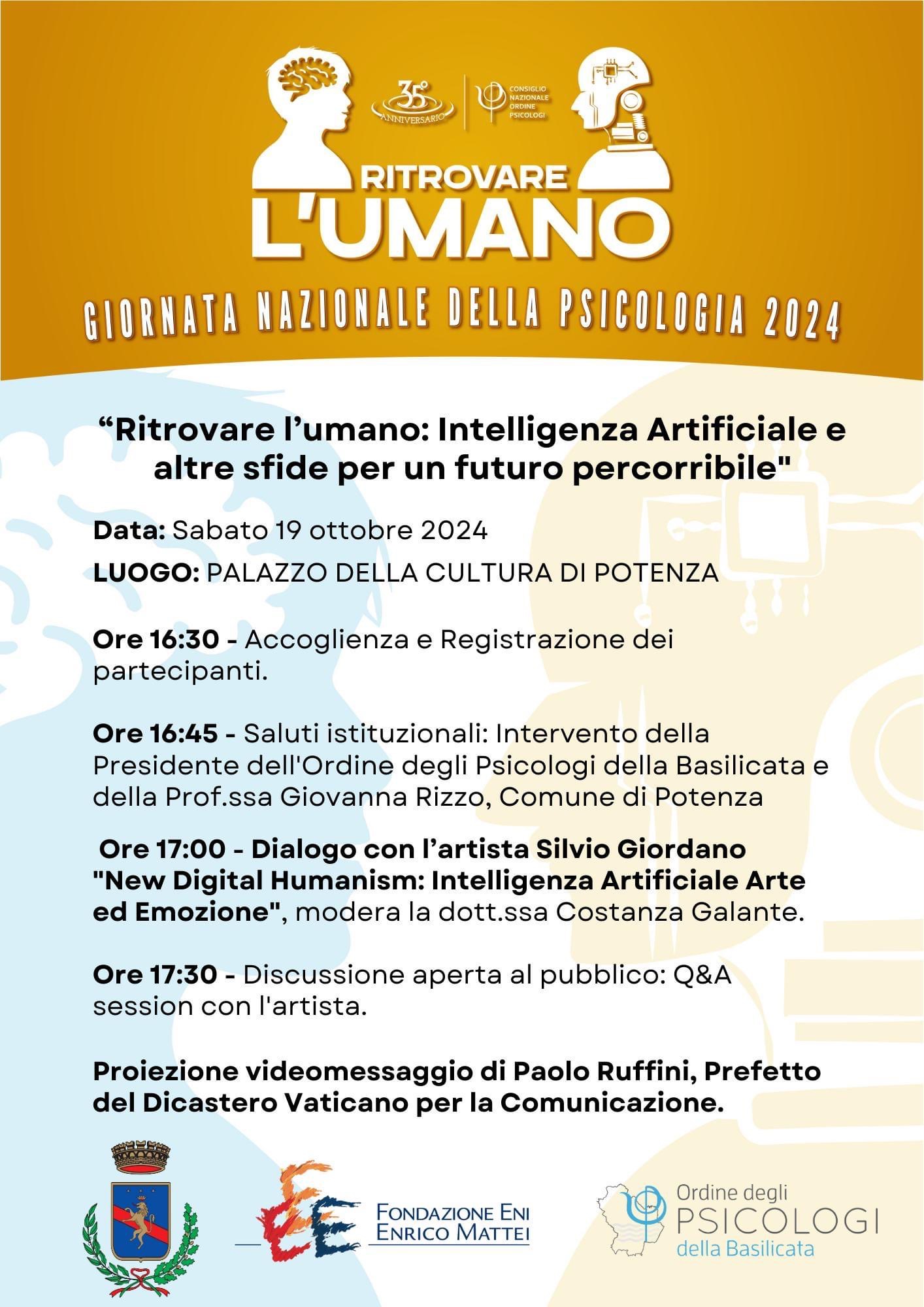 “Ritrovare l’umano: Intelligenza Artificiale e altre sfide per un futuro percorribile” a cura dell’Ordine degli Psicologi della Basilicata