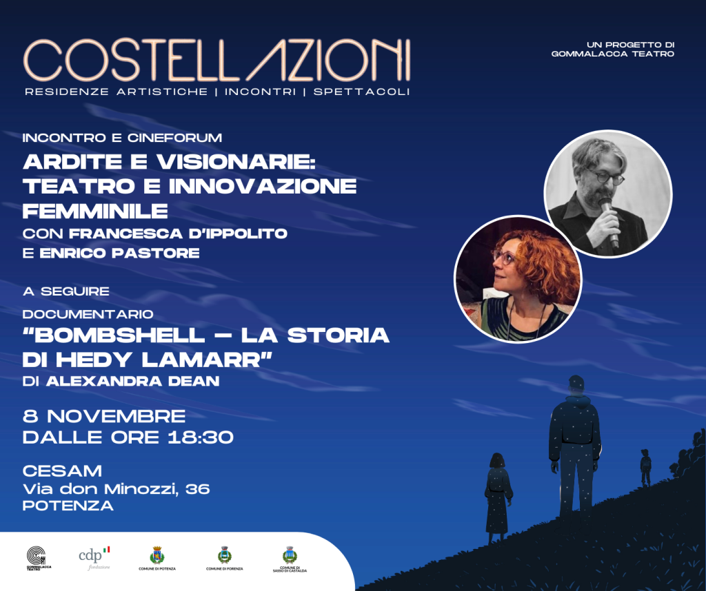 Ardite e visionarie: teatro e innovazione femminile con Francesco D’Ippolito e Enrico PastoreA seguire documentario “Bombshell”, dedicato alla straordinaria figura di Hedy Lamarr, diva hollywoodiana ma anche geniale scienziata.