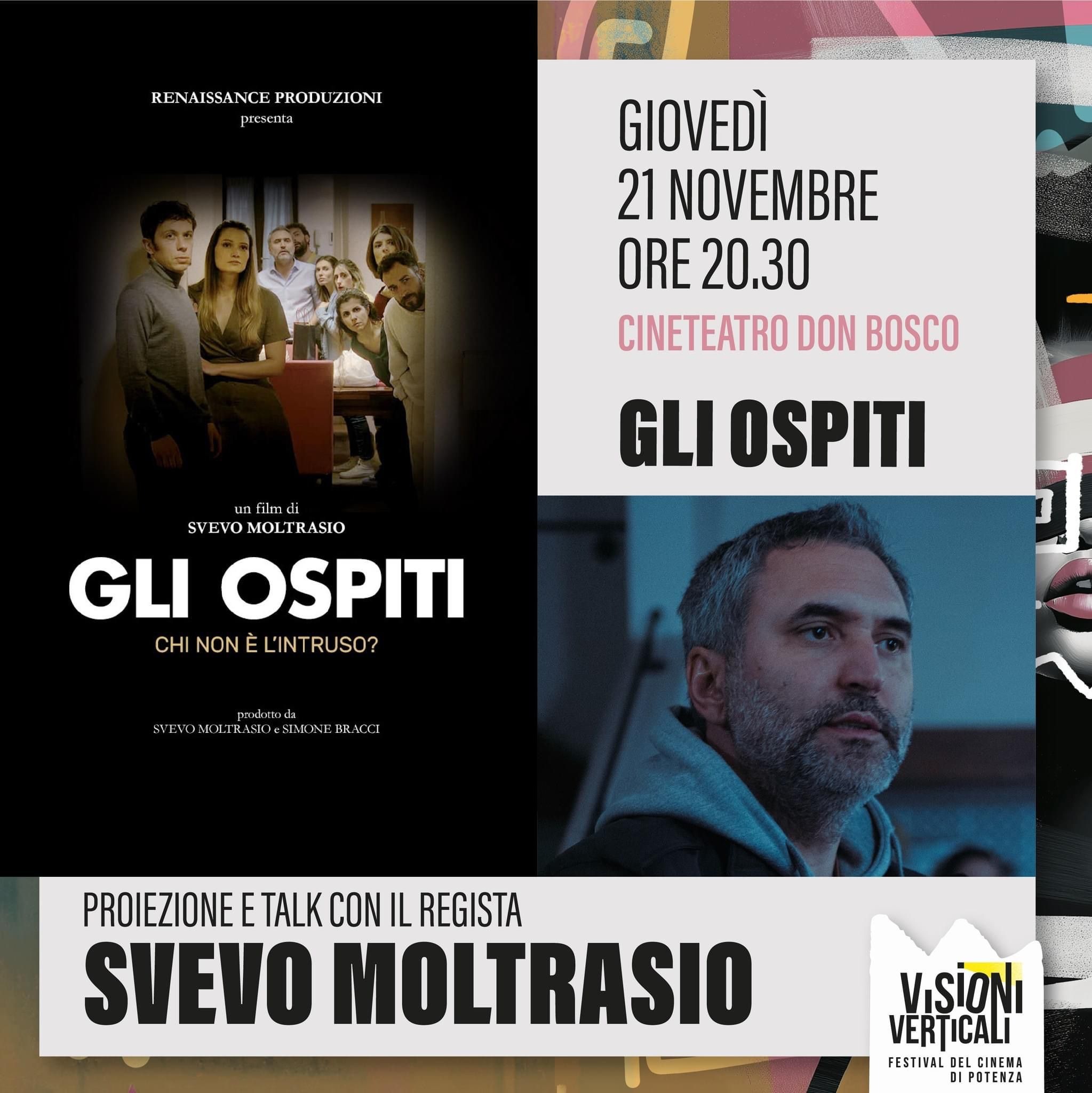 Infine, alle 20.30 Visioni Verticali accoglierà Svevo Moltrasio, noto come autore della web serie Ritals, che presenterà in una prima regionale il suo primo film da regista, Gli ospiti: una black comedy indipendente, ispirata al dramma familiare italo-francese, che combina conflitti sociali, ritratto generazionale e rimandi all’attualità. Durante una serata in un casale nella campagna romana, dieci personaggi, perlopiù amici sui 30 e 40 anni, sono costretti ad un confronto che cresce tra attriti, incomprensioni e sorprese, naufragando irrimediabilmente in un tutti contro tutti.