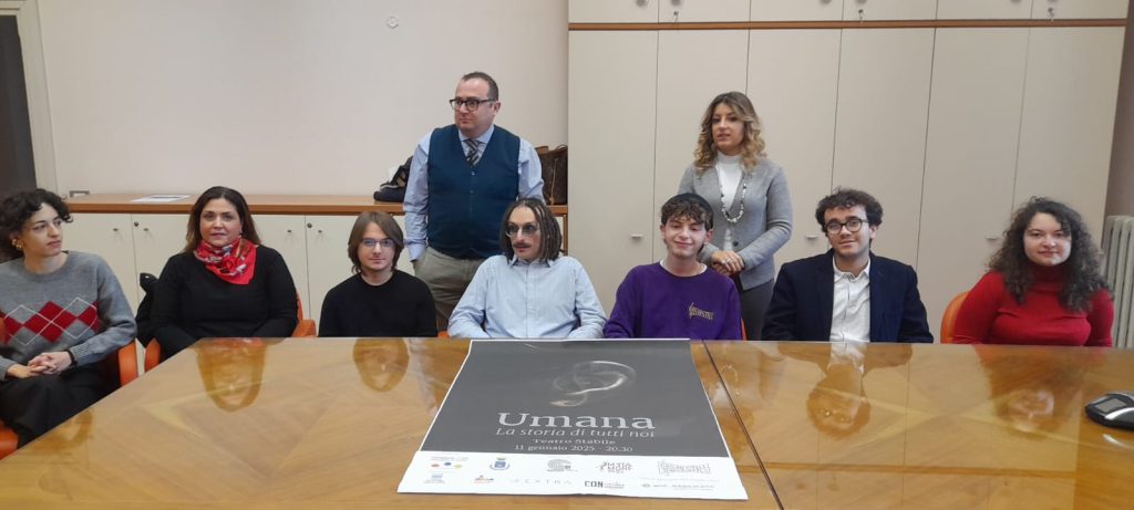 10.01.2025 – ore 13,20: “Una viaggio nell’umanità, dalla sua genesi fino a scoprirne gli orizzonti futuri”: così i protagonisti hanno presentato la performance teatrale di musica, danza e teatro ‘Umana’, in programma sabato 11 gennaio, alle ore 20,30, al teatro Stabile, ingresso gratuito dalle 20. L’assessore e vicesindaco Federica D’Andrea, nell’introdurre la conferenza stampa, svoltasi nel Palazzo di Città, si è soffermata sull’importanza “di un percorso, quello di ‘Potenza Città italiana dei giovani’, che ha visto centinaia di ragazzi creare relazioni, generare opportunità, tessere rapporti costruendo eventi, appuntamenti, occasioni di crescita comune, facendo della sinergia e del confronto vie privilegiate per condividere un’idea concreta di cosa sia Potenza oggi e soprattutto di come potrà essere in futuro”. “E ‘Umana’ è una bellissima sintesi di tutto questo – ha spiegato il presidente del Comitato tecnico ‘Potenza Città italiana dei Giovani 2024’, Antonio Candela, con un lavoro di squadra, che alla vigilia del passaggio di testimone, con la nuova Città italiana dei Giovani, che sarà indicata nel mese di febbraio, è espressione di quanto bene sappiano fare i nostri giovani, delle potenzialità che siano in grado di esprimere, della ricchezza che ciascuno di loro è in grado, singolarmente e come gruppo, di donare alla nostra comunità locale, attraverso una vera e propria industria culturale e creativa”. Per Donato Telesca, intervenuto all’incontro con i giornalisti insieme agli altri componenti dell’ ‘Orchestra maldestra’, “il lavoro realizzato è particolarmente articolato, interamente fondato sui valori. Più che un racconto cronologico della storia dell’umanità, infatti, si tratta di un cammino che attinge ai principi e che è per noi rappresenta una grande gioia, quella di ragazzi con un’età compresa tra i 14 e i 20 anni, che sono riusciti, con un lavoro originale, a raggiungere il prestigioso palcoscenico del teatro Stabile”. Michela Consolo, per ‘Metamorfosi danza’ ha parlato di “ragazzi talentuosi con i quali si è creata un’interazione vera, concreta, che ha sperimentato insieme la bellezza, l’entusiasmo, la fragilità dell’essere ragazzi, ai quali mi sento di rivolgere le parole di Alda Merini: Siate soltanto giovani”. Per Roberta Colucci di ‘Gommalacca teatro’. Il tessuto artistico ha bisogno di collaborazione e ricerca e, lo spettacolo che portiamo in scena è frutto di tutto questo, perché tutti siamo portatori di una storia, accomunati dall’essere umani, per far ‘depositare’ storie e non farle cadere nell’oblio”. Nel corso della presentazione è stato spiegato inoltre come il linguaggio musicale scelto sia teso a far vibrare le corde dell’anima, anche proprio grazie alle corde di strumenti, quali per esempio la ‘chitarra a battente’, che dal XVII secolo si lasciavano ascoltare nelle sale dell’Italia meridionale. Un aspetto, che insieme ad altri è frutto di una ricerca su strumenti e antica musicalità che ha visto interessati anche contesti universitari internazionali.