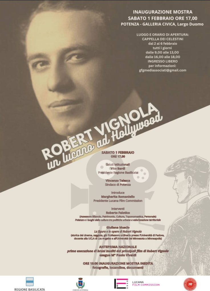 24.01.2025 – ore 10,10: Approda a Potenza la mostra su Robert Vignola, con il patrocinio del Comune di Potenza e della Lucana Film Commission. Il focus della ricerca è il mondo di Robert Vignola nel contesto del cinema muto americano prendendo in esame diversi materiali. Matera Fiction ha trovato un filmato inedito su Vignola negli Stati Uniti, acquisito delle partiture di alcuni suoi film, portato la mostra nelle periferie, sul TIR della cultura. “La mostra non ha la pretesa di essere esaustiva – puntualizza Giuseppe Papasso curatore della mostra – ma ricostruisce una cultura dispersa. La ricerca comincia a dare piccole risposte per seguire grandi obiettivi”. La mostra potrà essere visitata tutti i giorni nella Cappella dei Celestini, dal 2 al 6 febbraio, dalle ore 9 alle 13 e dalle ore 16 alle 18. Questo il programma dell’inaugurazione: