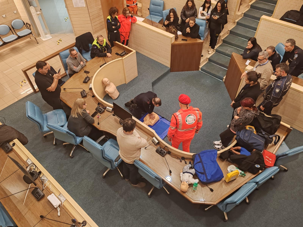 6.03.2025 – ore 12,45: Proseguono le attività di formazione del personale interno e volontario di Protezione civile e della Polizia locale, con un incontro inserito nel progetto Cardium Emergency BLS-D, tenuto dal dirigente medico cardiologo Giuseppe Colangelo, della Divisione formazione del Corpo Soccorso Emergency, nella Sala del Centro Operativo Comunale, ‘Giuseppe Zamberletti’, della U.S. Protezione Civile di Potenza.