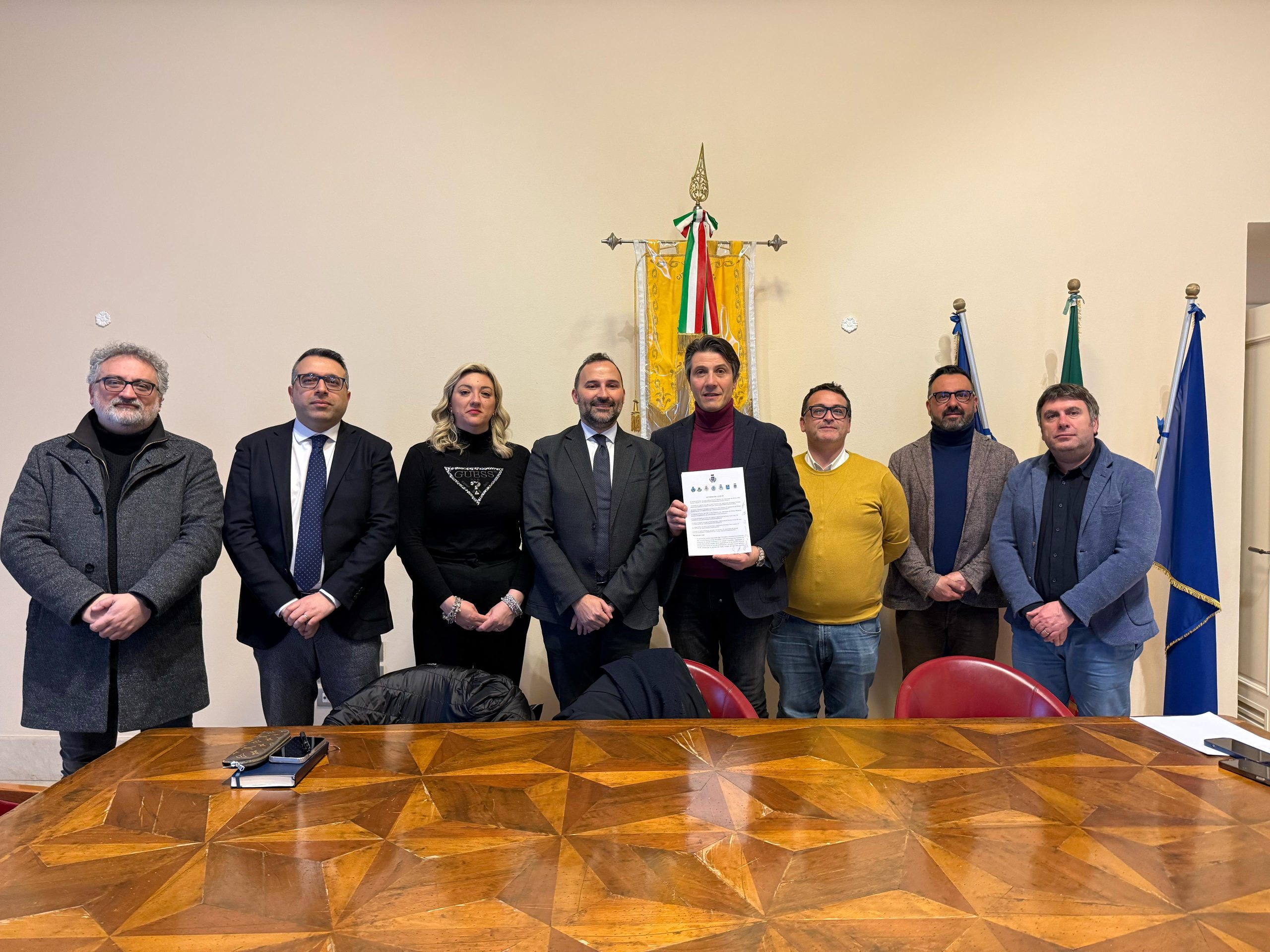 19.03.2025 – ore 15,40: Siglato nella Sala dell’Arco del Palazzo di Città, al secondo piano della sede municipale di piazza Matteotti, l’Accordo tra Comuni finalizzato alla elaborazione e il successivo sviluppo della Strategia territoriale dell’Area urbana di Potenza. Presenti i Sindaci degli otto Comuni interessati: Vincenzo Telesca per il capoluogo, Giuseppe Mecca per Avigliano, Gerardo Larocca per Brindisi di Montagna, Margherita Scavone per Picerno, Paolo Cillis per Pietragalla, Antonio De Luca per Pignola, Fabio Laurino per Tito e Francesco Santopietro per Vaglio.