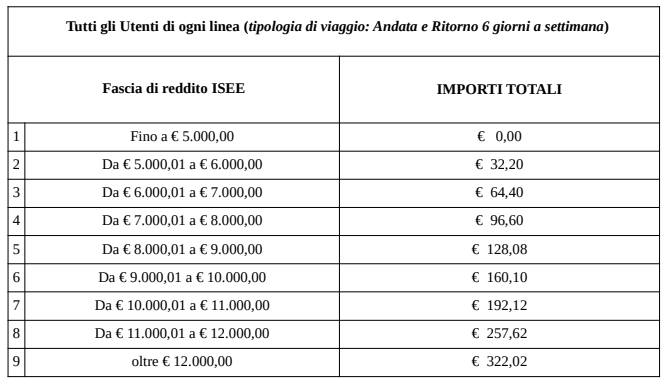 20.03.2025 – ore 10,50: Gli importi totali della Seconda e ultima rata (a saldo) relativi alla fruizione del servizio di trasporto scolastico per l’anno scolastico 2024/2025 per i mesi da gennaio a giugno 2025 devono essere corrisposti dal 20 marzo 2025 al 10 aprile 2025, secondo la tariffa attribuita in ragione della fascia ISEE di appartenenza: