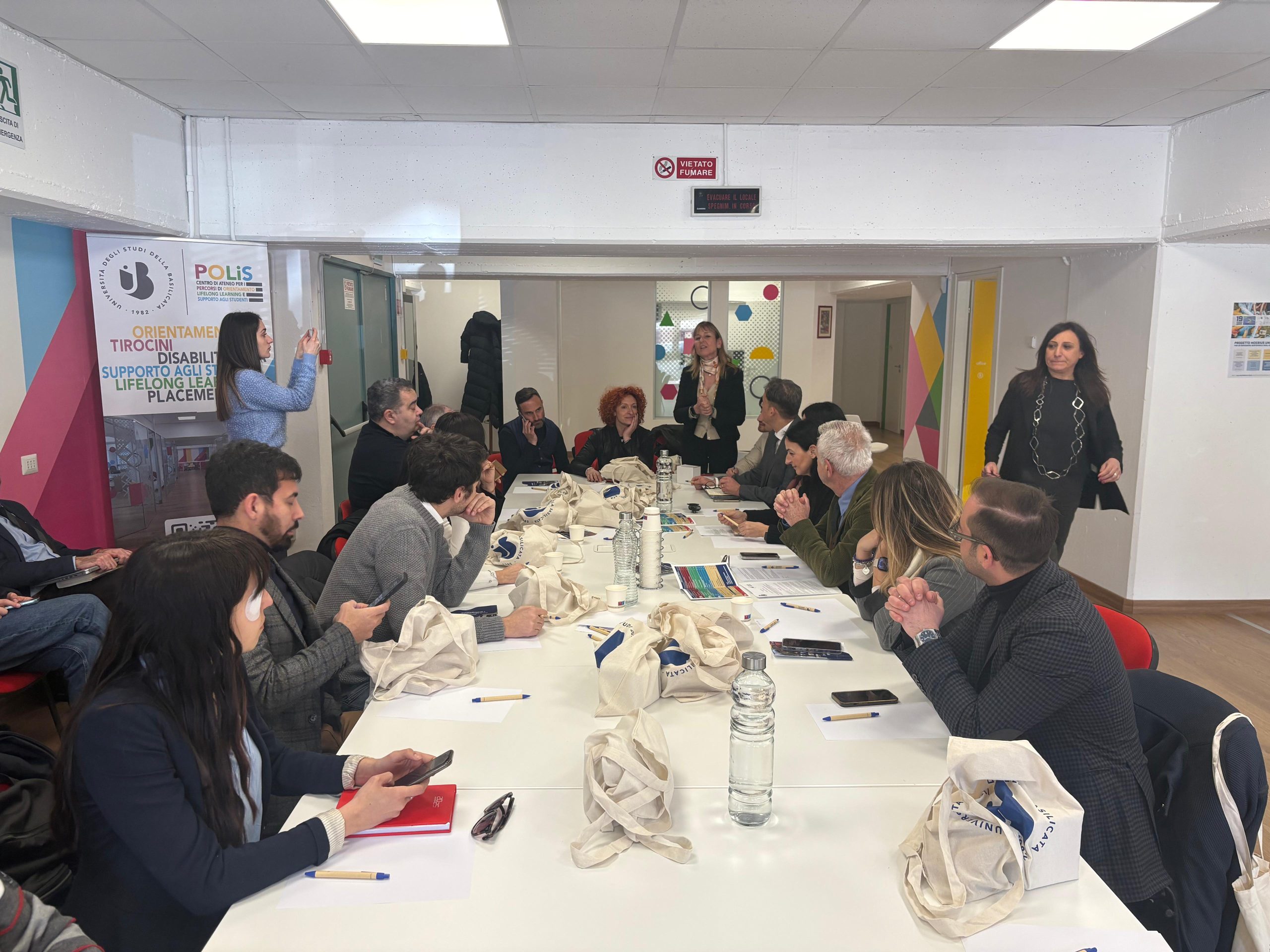 20.03.2025 – ore 15,15: La Quarta Commissione Consiliare si è riunita nella sede universitaria di Polis, in occasione dell’iniziativa ‘Università Svelate’. “Un incontro di grande valore istituzionale e simbolico” ha evidenziato la presidente dell’organo consiliare Angela Blasi. Presenti il Rettore Ignazio Mancini, il direttore generale dell’Unibas Marco Porzionato, il prorettore al Public Engagement Donato Verrastro, la prorettrice alla Didattica Patrizia Falabella, la direttrice e la responsabile del Centro Polis rispettivamente Ada Braghieri e Bianca Andretta. Hanno partecipato anche i componenti del comitato Unitown, i rappresentanti degli studenti e l’assessore con delega all’Università Federica D’Andrea.