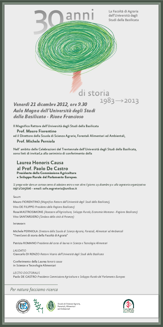 Laurea Honoris Causa al prof. Paolo De Catro nell’ambito delle celebrazioni del trentennale dell’Università degli Studi della Basilicata