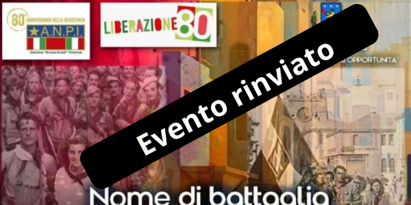 L’evento “Nome di battaglia: POTENZA – Donne e Uomini eroi Lucani della Liberazione” in programma domani 24 aprile 2025, è stato rinviato a data da destinarsi a motivo delle disposizioni istituzionali che prevedeono la sospensione o il rinvio delle manifestazioni pubbliche nel corso del periodo di lutto nazionale (dal 22 al 26 aprile 2025)