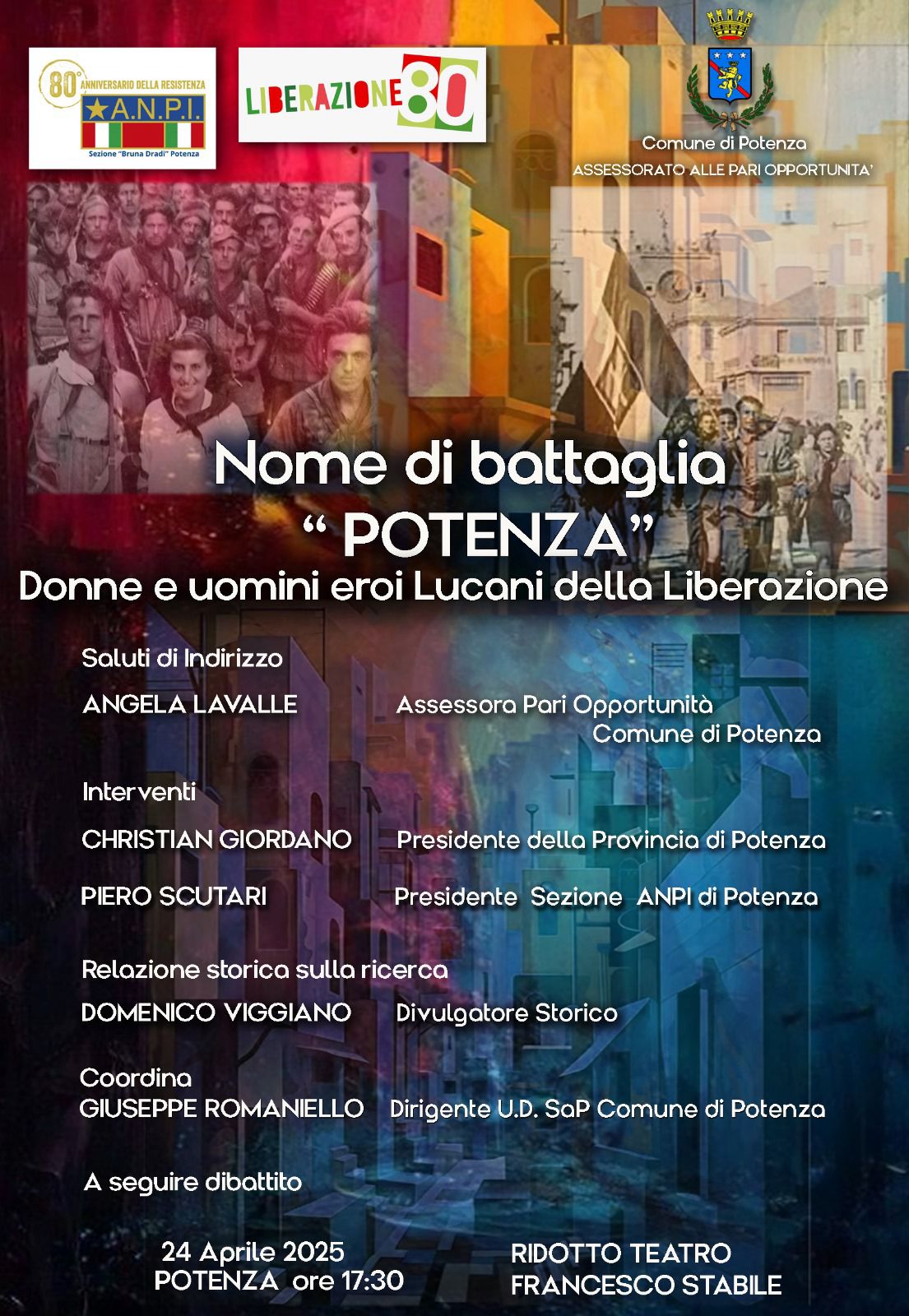 L’evento è promosso dall’Assessorato alle Pari Opportunità del Comune di Potenza, in collaborazione con ANPI – Sezione “Bruna Dradi” di Potenza.