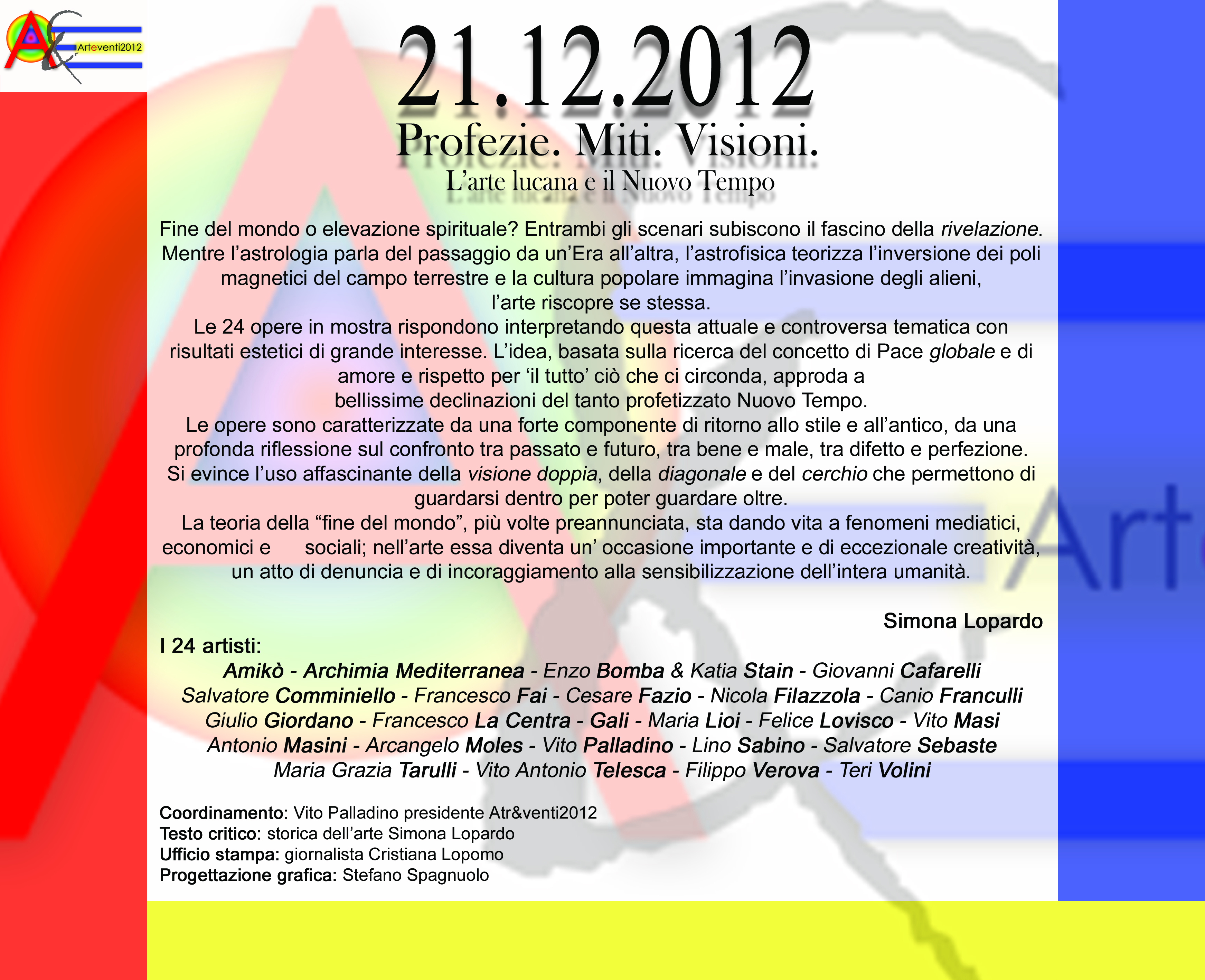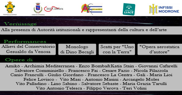 La rassegna di 24 artisti esposta dal 21 dicembre 2012 al 21 gennaio 2013 all’interno dell’atrio del Palazzo della Provincia di Potenza e dal 21 dicembre 2012 al 21 marzo 2013 lungo viale Dante.