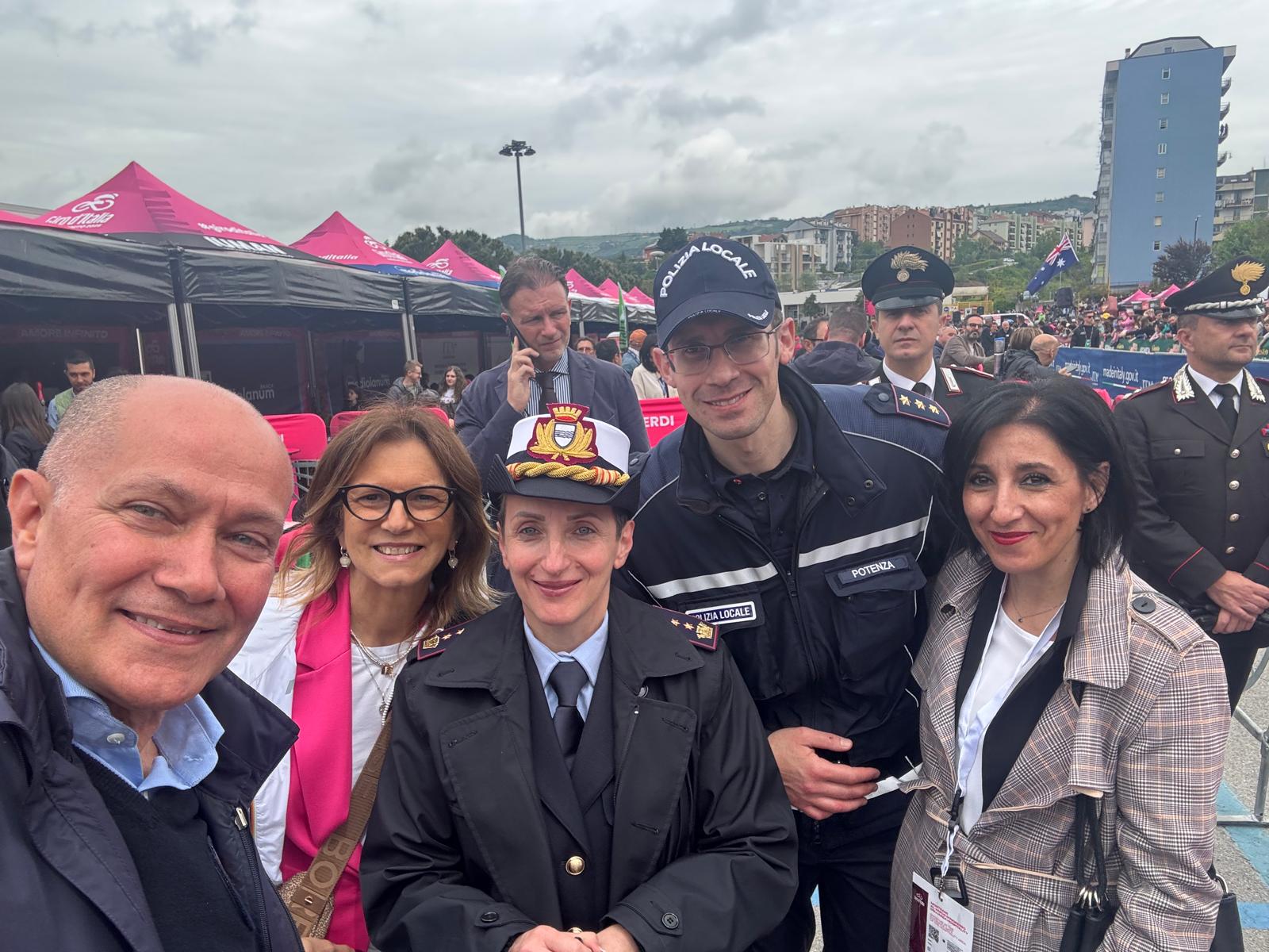“Secondo le esigenze, con l’attenzione sollecitataci dal Sindaco e dall’Amministrazione, abbiamo predisposto un servizio che ci vede impegnati con tutto il personale a disposizione. Ai 41 operatori della Polizia locale di Potenza in servizio oggi, agenti e ufficiali, – spiega la comandante Maria Santoro – si sono aggiunti 19 colleghi provenienti da Vaglio di Basilicata, Rionero in Vulture, Melfi, Pietragalla, Castelmezzano, Castelluccio Inferiore. Oltre venti i veicoli utilizzati, auto, stazione mobile, moto, per un dispiegamento di uomini e mezzi programmato e realizzato per coprire l’intero percorso che gli atleti affronteranno nel capoluogo. Già dalle 20 di ieri sera, pattuglie hanno svolto il proprio servizio e, in continuità, anche durante la notte, hanno garantito la presenza lungo il tracciato cittadino, per far sì che questa importante giornata per Potenza potesse svolgersi in assoluta sicurezza”. “Un ringraziamento davvero di cuore – ha espresso il responsabile della Protezione civile comunale Giuseppe Brindisi – a tutte le associazioni e i volontari e al responsabile della Protezione civile comunale di Venosa che, in maniera assolutamente gratuita, presidiano le postazioni loro affidate e, fino alla partenza della tappa, e anche oltre, saranno presenti lungo le vie di Potenza. Le sezioni potentine delle associazioni Gruppo Comunale Volontari Protezione Civile, Gruppo Lucano, Corpo Forestale Volontario Esaf, Associazione Carabinieri Agesci Croce Rossa Italiana, Corpo Soccorso Emergency Aquile Lucane, Vola, naturalmente personale dell’ufficio comunale di Protezione civile, con una quindicina di mezzi e due ambulanze sono dislocate lungo i viali attraversati dai protagonisti del Giro e dai tanti mezzi che si muovono al seguito della più importante competizione ciclistica italiana. Oltre un mese per coordinare l’intera manifestazione, con incontri, sopralluoghi, riunioni, che sono condensati in queste ore che ci vedono tutti al lavoro perché Potenza mostri il meglio di quanto è in grado di offrire, anche in termini di organizzazione e realizzazione di un evento di rilevanza internazionale”.